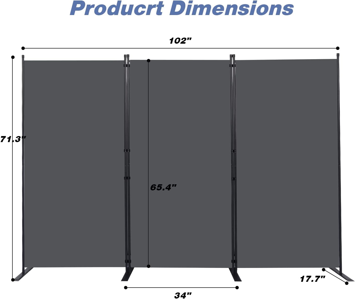 Room Divider, 3 Panel Folding Privacy Screens with Wider Support Feet, 6 Ft Portable Room Partition for Room Separator, 102" W X 71" H, Grey