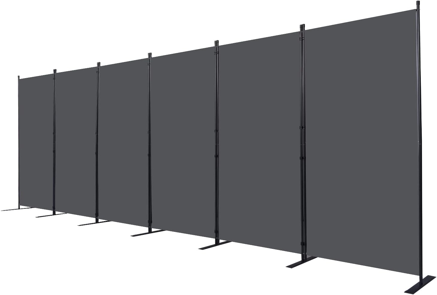 Room Divider, 6 Panel Folding Privacy Screens with Wider Support Feet, 6 Ft Portable Room Partition for Room Separator, 204" W X 71" H, Grey