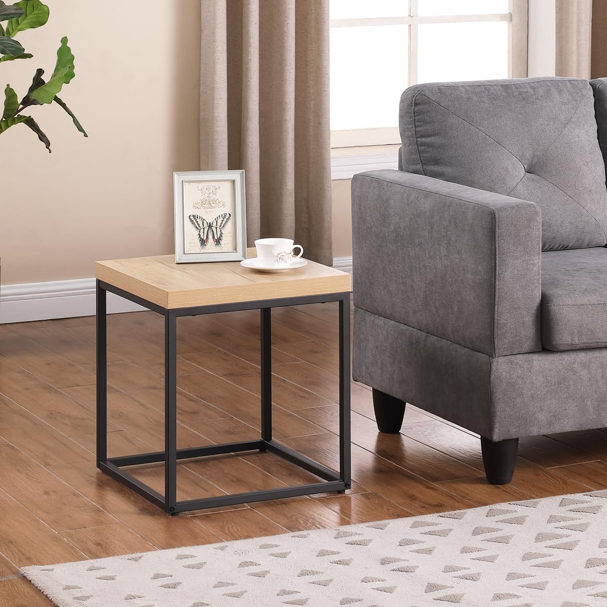 CENSI 18-Inch Natural Oak Accent End Table/Side Table for Living Room, Modern Industrial, Square, Metal and Wood (White Oak)