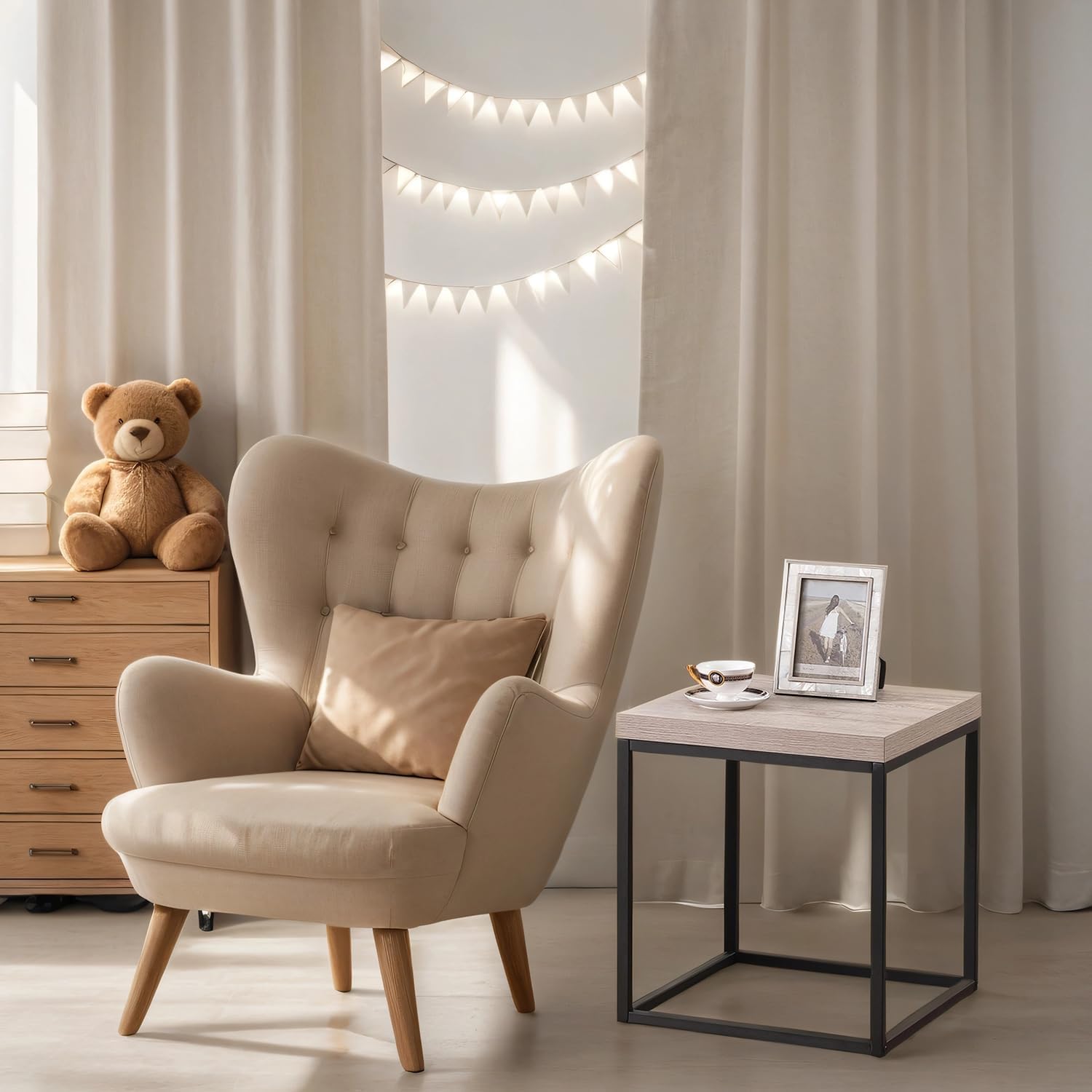 CENSI 18-Inch Grey Wash Accent End Table/Side Table for Living Room, Modern Industrial, Square, Metal and Wood (French Oak)