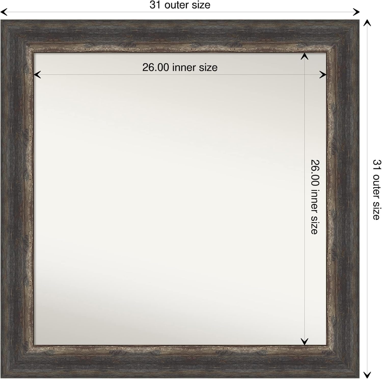 - MIRROR DETAILS: This mirror features premium glass for a clear, undistorted image and has a non-beveled surface to maximize the viewing area. The overall size of this bathroom mirror measures 31.25 x 31.25 inches, including the frame. Its reflective area measures 26 x 26 inches.