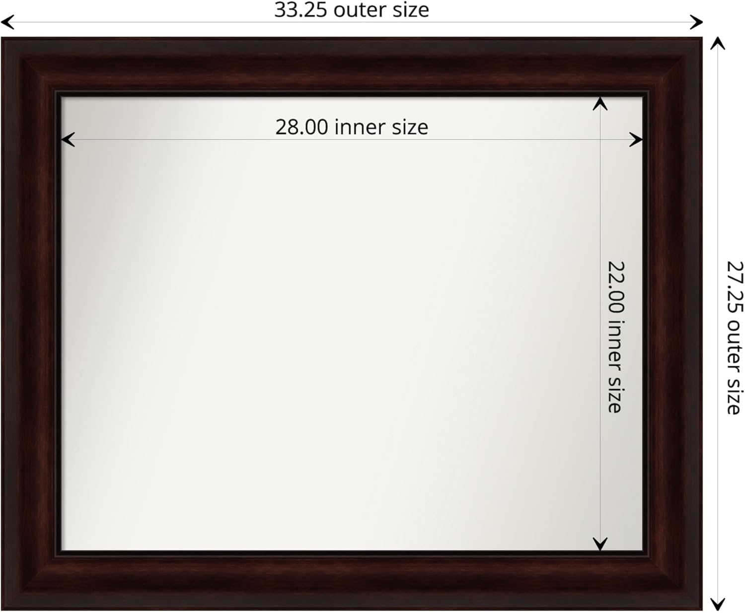 - MIRROR DETAILS: This mirror features premium glass for a clear, undistorted image and has a non-beveled surface to maximize the viewing area. The overall size of this bathroom mirror measures 33.25 x 27.25 inches, including the frame. Its reflective area measures 28 x 22 inches.
