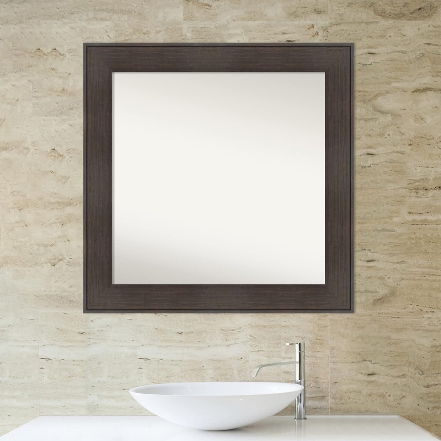 Amanti Art Brown Bathroom Mirror for Over Sink, 32x32 William Rustic Woodgrain Square Vanity Mirror, Large Casual Frame, Hangs Horizonally and Vertically, Bathroom Wall Decor, Non-Beveled Edge