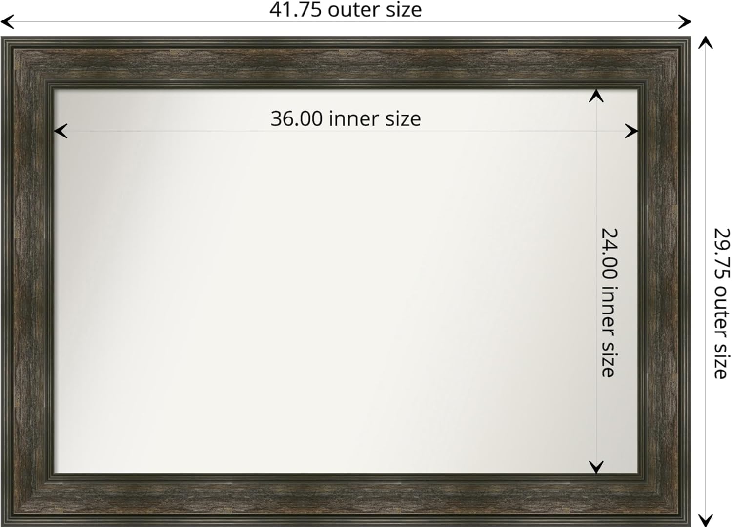 - MIRROR DETAILS: This mirror features premium glass for a clear, undistorted image and has a non-beveled surface to maximize the viewing area. The overall size of this bathroom mirror measures 41.75 x 29.75 inches, including the frame. Its reflective area measures 36 x 24 inches.
