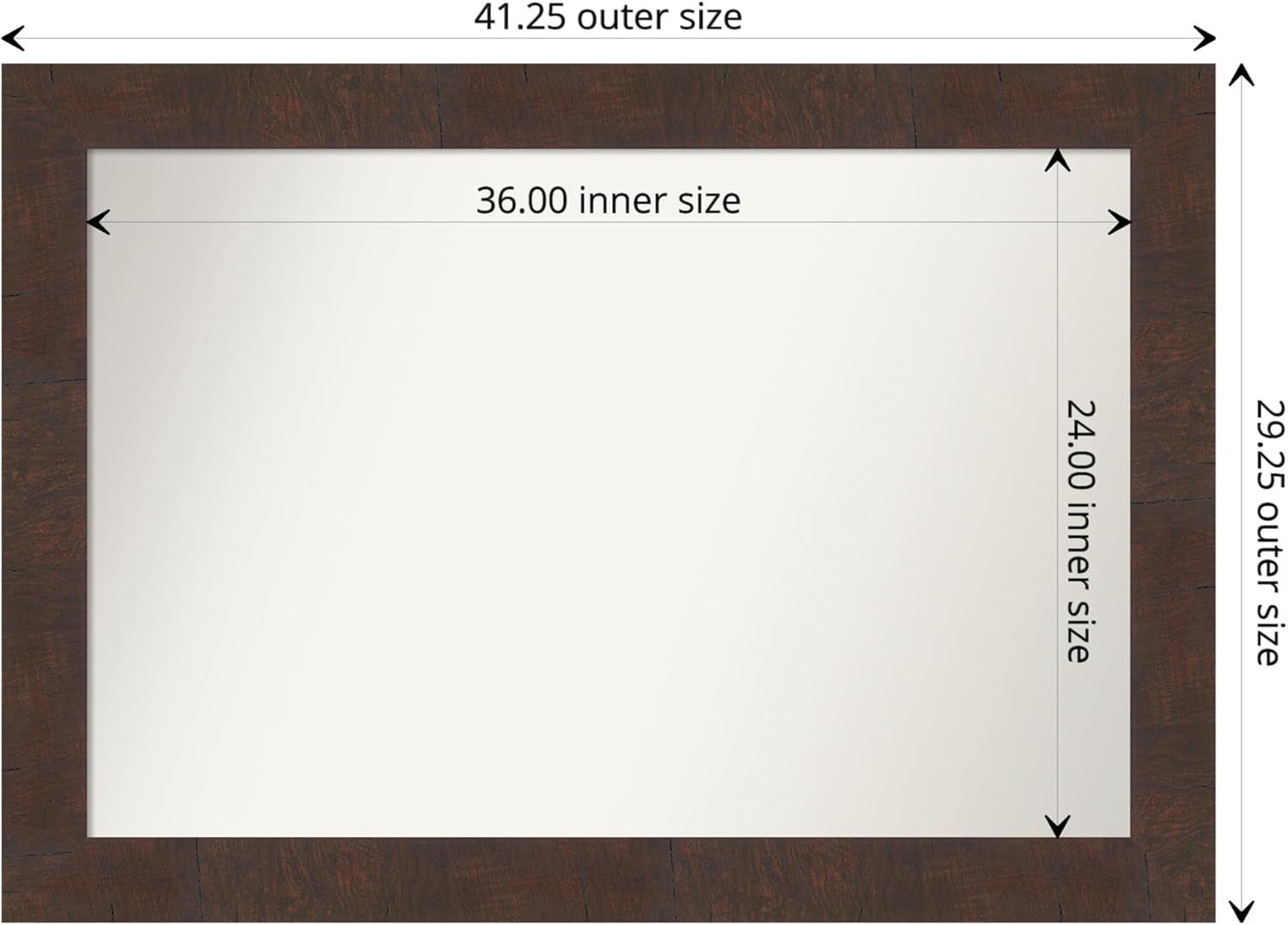 - MIRROR DETAILS: This mirror features premium glass for a clear, undistorted image and has a non-beveled surface to maximize the viewing area. The overall size of this bathroom mirror measures 41.25 x 29.25 inches, including the frame. Its reflective area measures 36 x 24 inches.