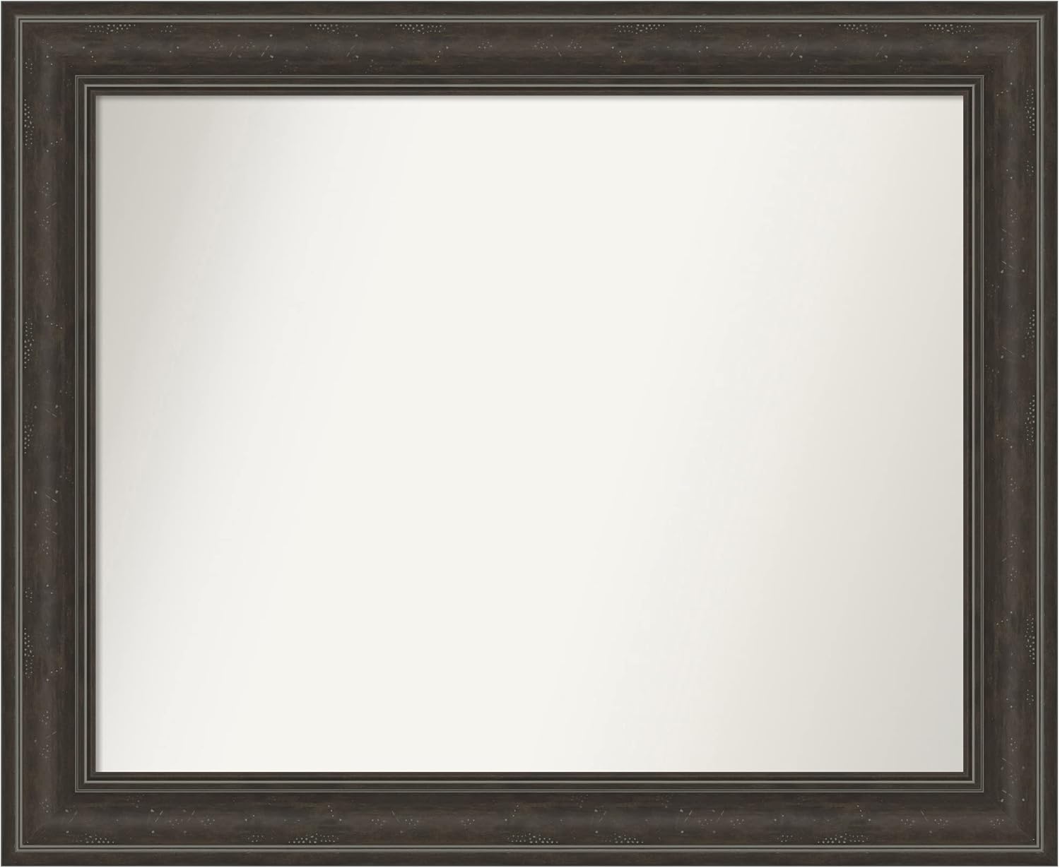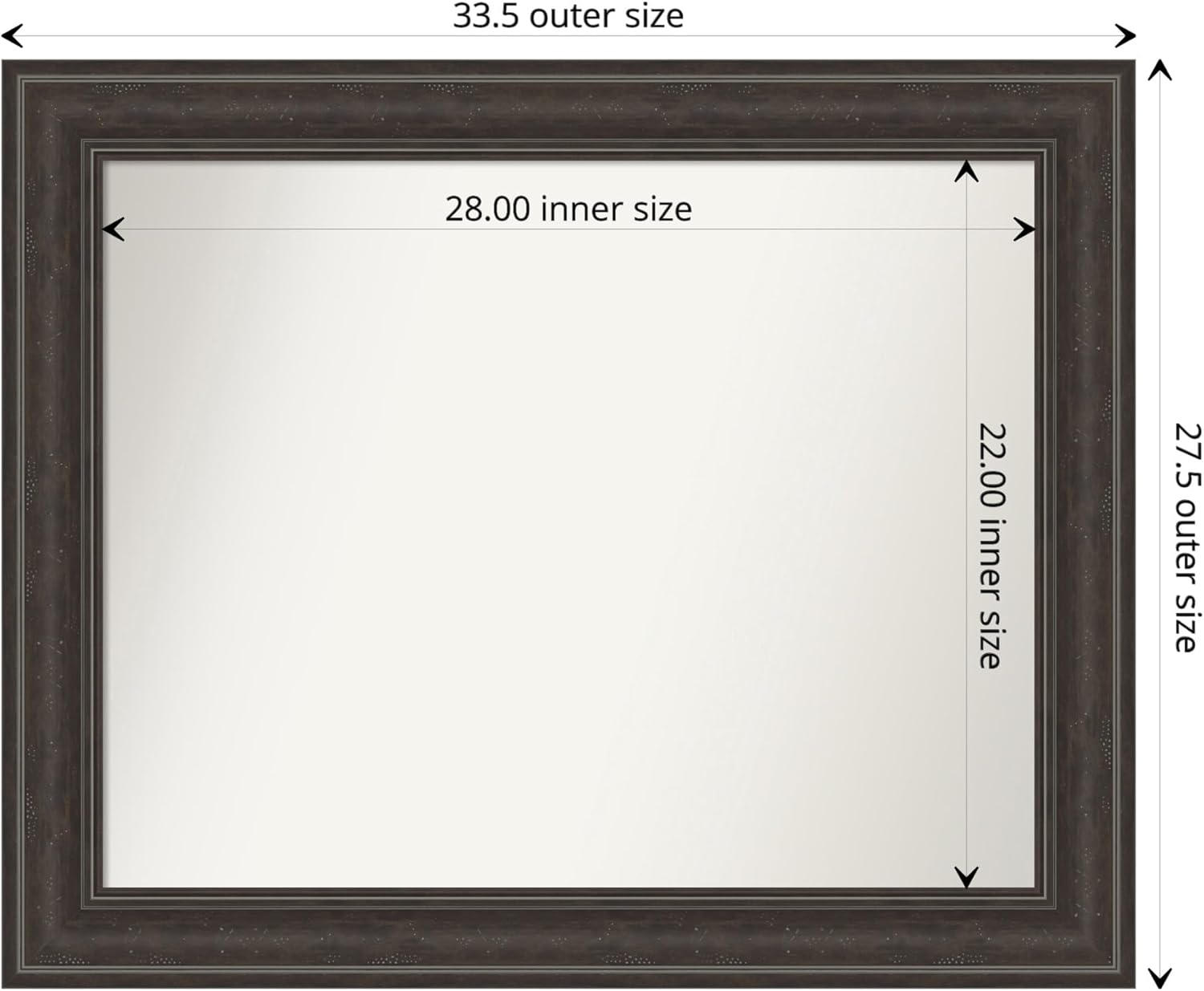 Amanti Art Brown Bathroom Mirror for Over Sink, 28x34 Shipwreck Greywash Rectangle Vanity Mirror, Large Traditional Frame, Hangs Horizonally and Vertically, Bathroom Wall Decor, Non-Beveled Edge