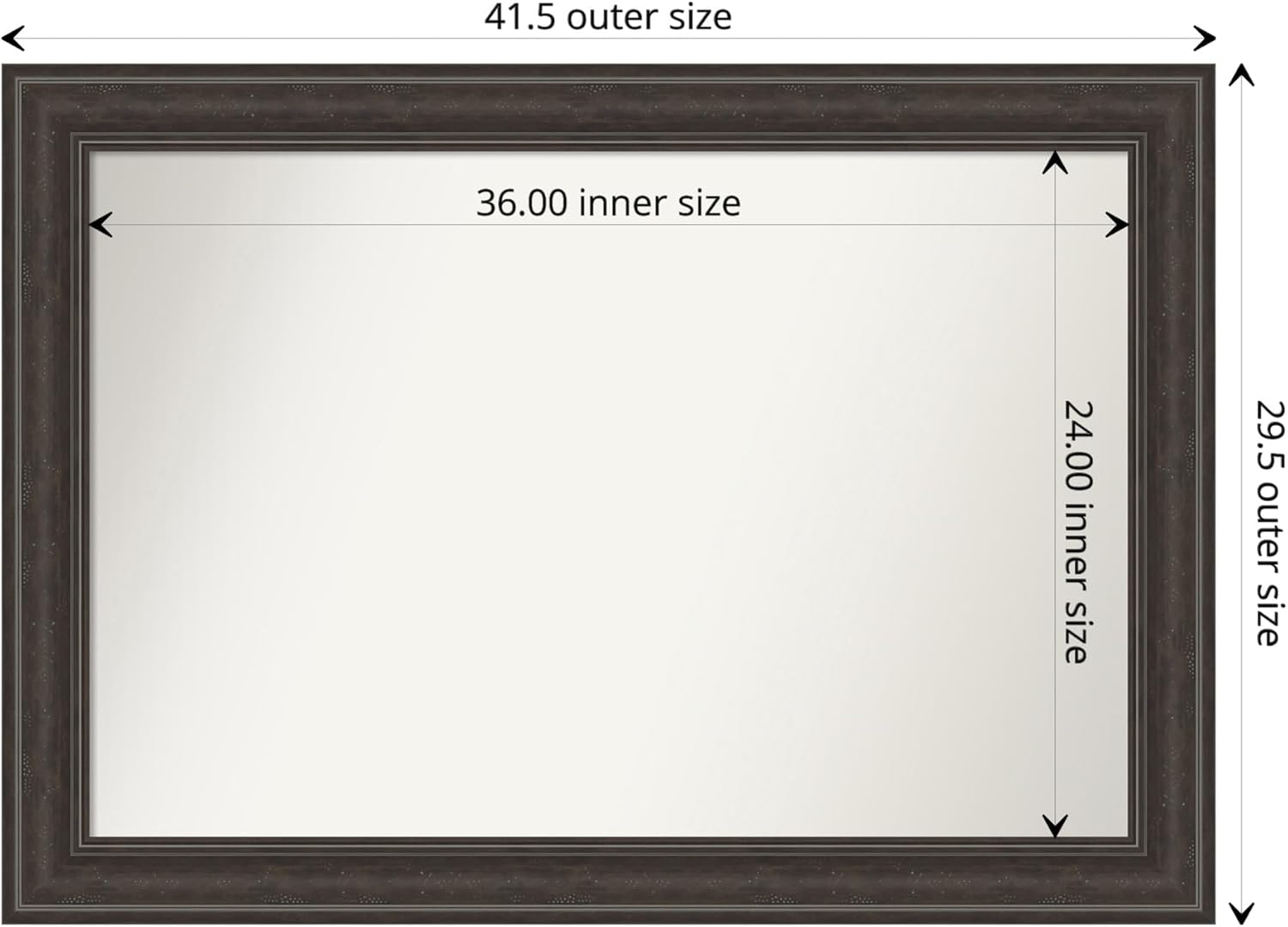- MIRROR DETAILS: This mirror features premium glass for a clear, undistorted image and has a non-beveled surface to maximize the viewing area. The overall size of this bathroom mirror measures exactly 41.5 x 29.5 inches, including the frame. Its reflective area measures 36 x 24 inches.