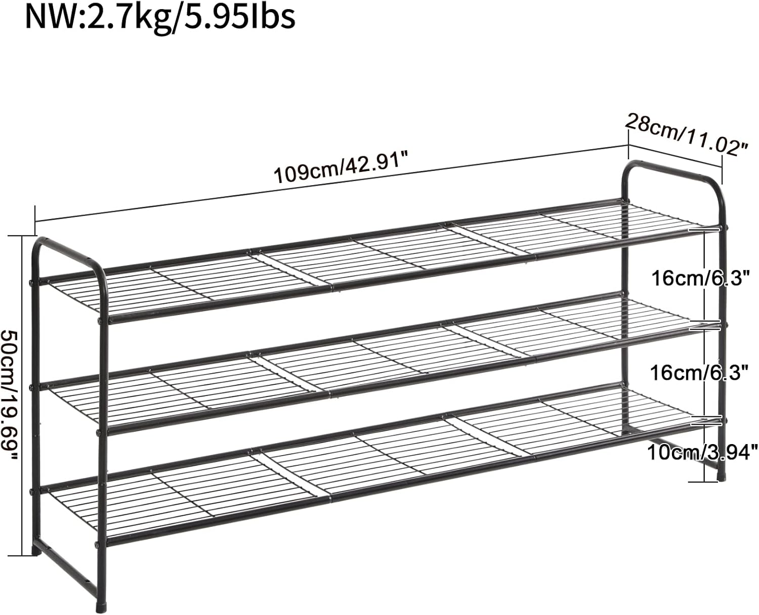 YMYNY Freestanding Shoe Racks, 3 Tiers Stackable & Adjustable Shoe Storage Shelf, Extra Large Capacity Shoe Organizer Stand for 20-24 Pairs, for Entryway, Closet, Bedroom, Black, 42.9" L, UHXJ302B