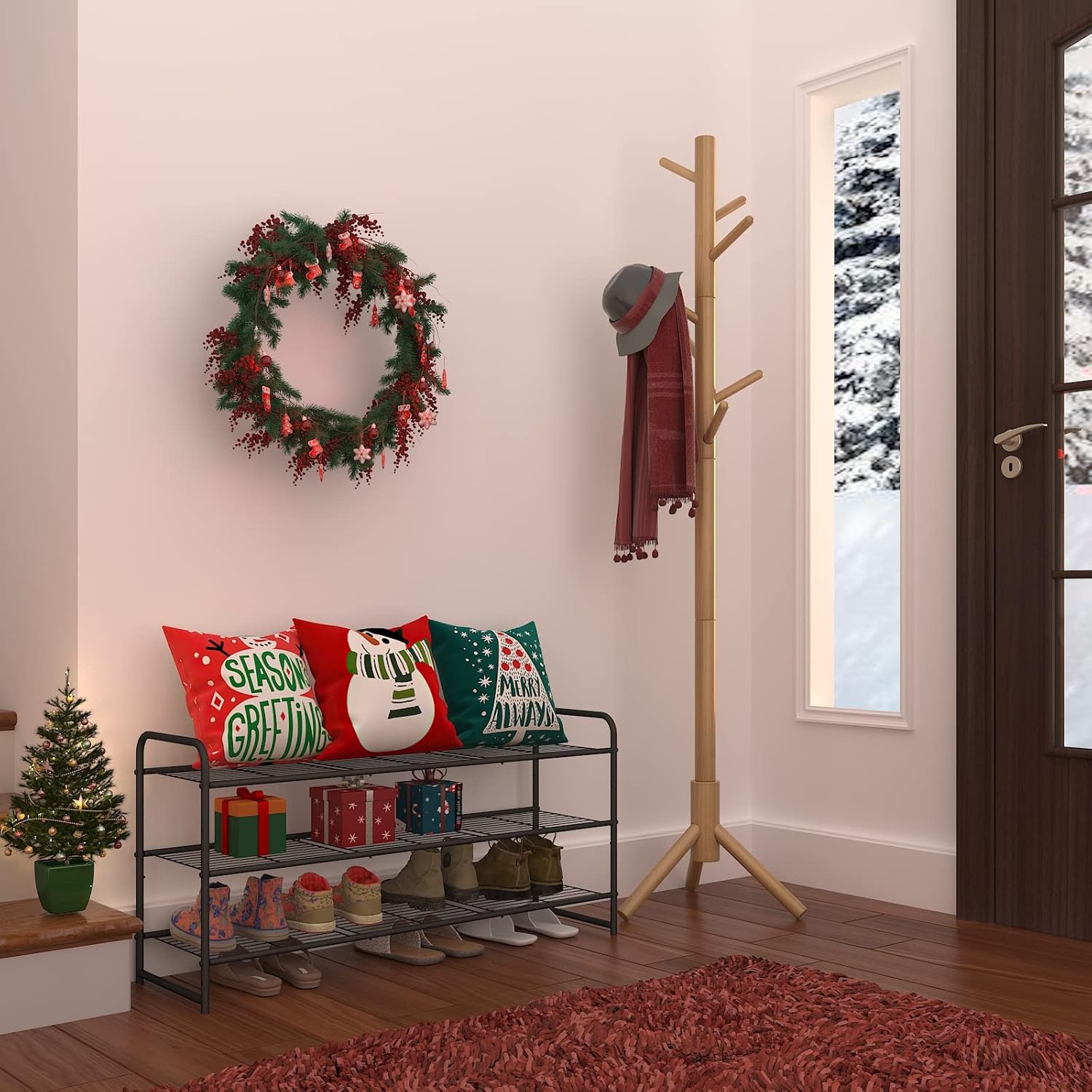 - Strong Structure: This shoe organizer is made of thickened metal tubes with a powder-coated finish and wired grid, which is smooth and has strong corrosion resistance. Each shelf can hold up to 30 pounds, fully meeting the daily storage needs of the family