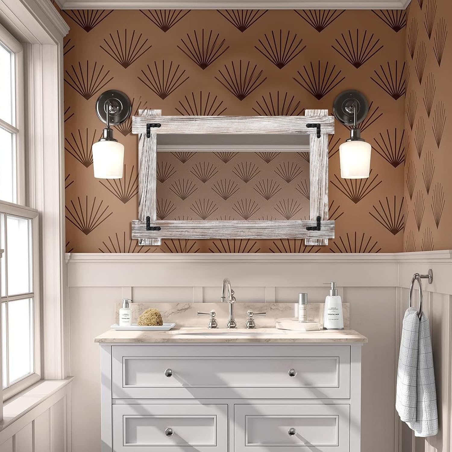 MeMoreCool Farmhouse Rustic Wood Framed Bathroom Mirror, Decorative Wall Mounted Rectangular Mirror for Bedroom, Living Room, or Bathroom, 40x28 Inch, White