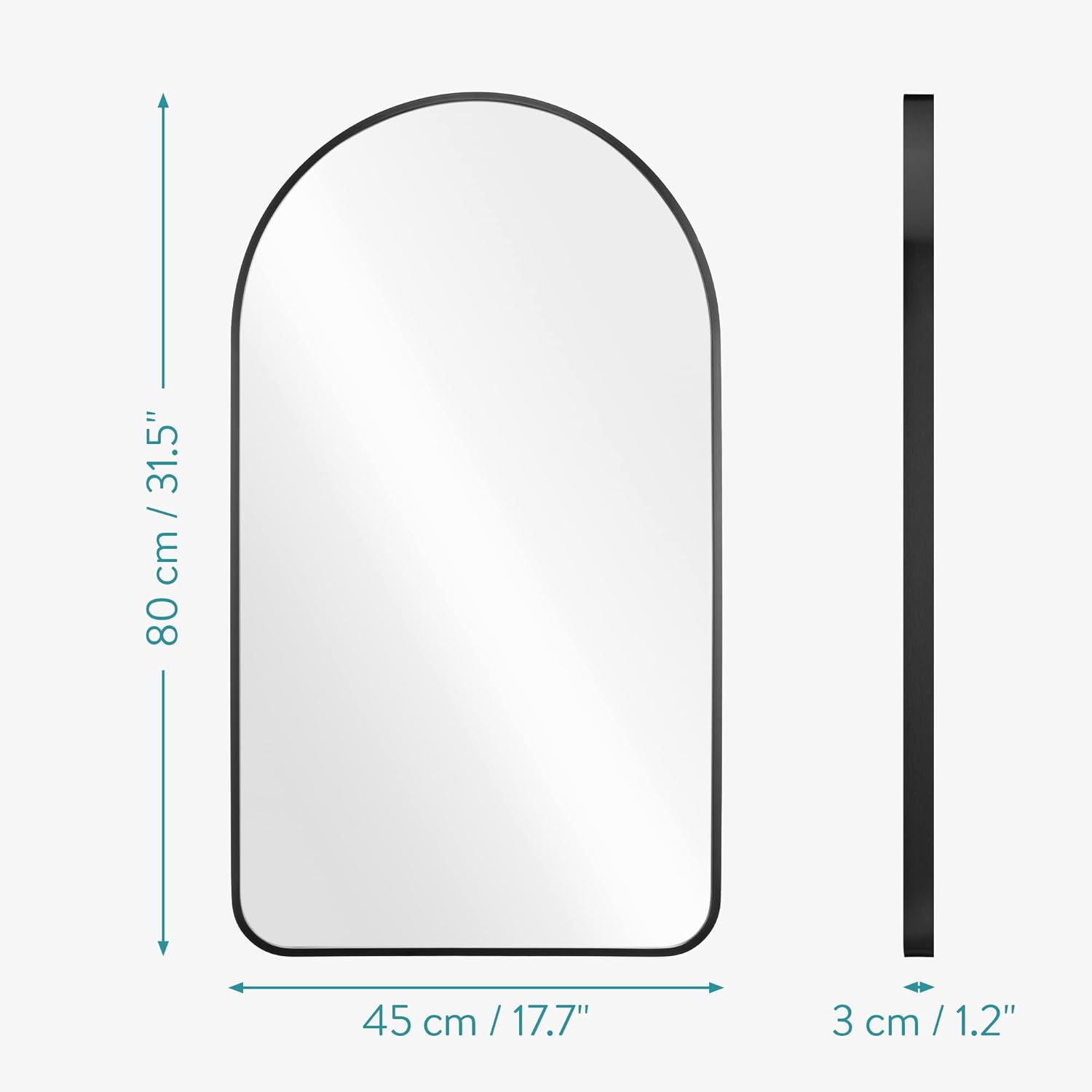 - SPECS: The arched mirror measures 17.7 x 31.5 x 1.2 inches (45 x 80 x 3 cm).