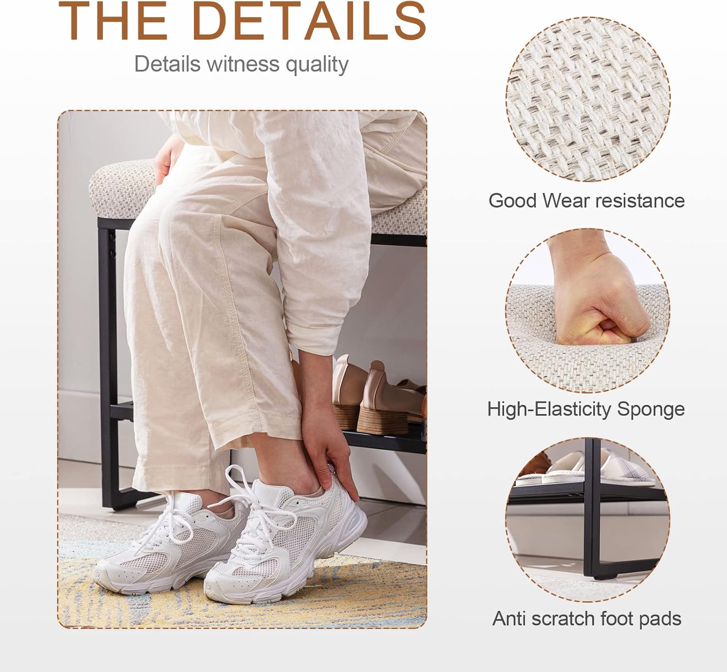 Zesthouse Upholstered Shoe Bench Entryway with Storage, Comfy Line Fabric Bench for Bedroom End of Bed, Metal Shoe Rack for Closet Hallway Doorway Living Room Mudroom, Beige