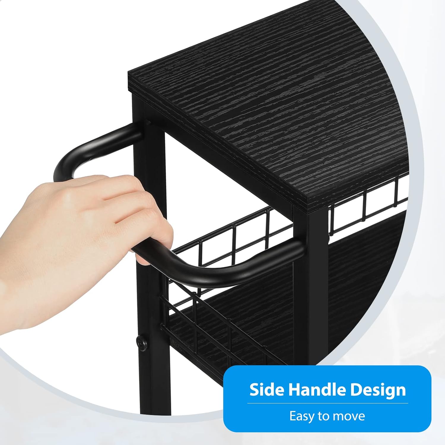 YBING Slim Storage Cart Kitchen Rolling Utility Cart on Wheels 4 Tier Mobile Narrow Cart with Wood and Metal Handle Slide Out Storage Shelving Unit Cart for Kitchen Living Room Small Places Black