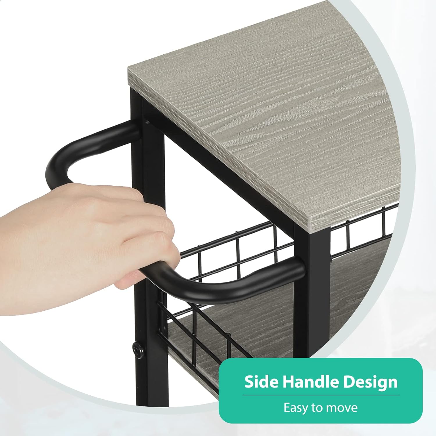 - Robust and Sturdy:The mobile narrow kitchen cart is made of sturdy square tubes, and each layer has a flat MDF desktop layer, which can keep items stable. We added a metal fence on the side to prevent objects from falling. Its grey appearance adds a modern touch to your home