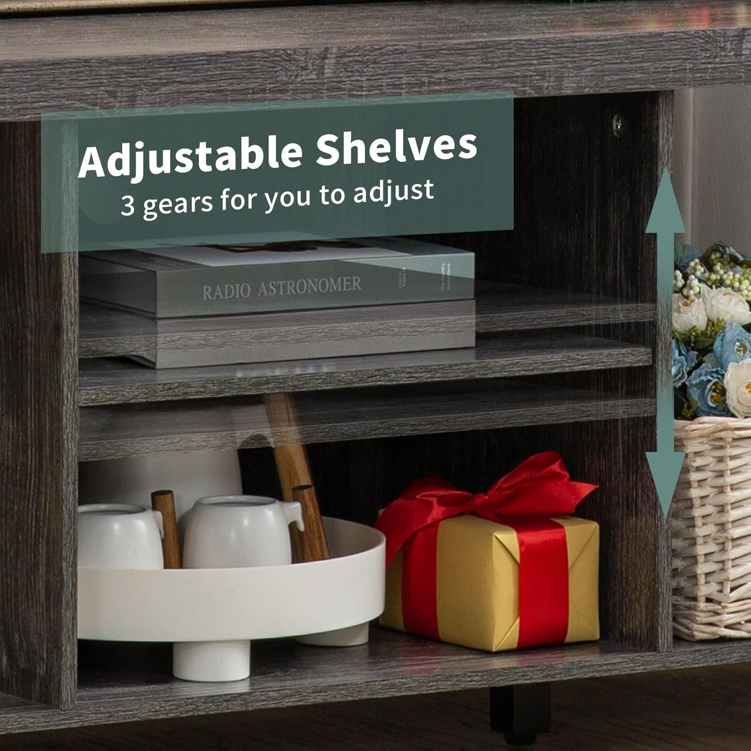 - 【Premium Material With Vivid Wood Grain】 – Made of high-quality MDF material and covered by premium ABS finish with vivid wood grain, this wooden TV stand and media center is built not only for the long-lasting service but also for decorative and stylish purpose. It is safe for home and friendly to the human body