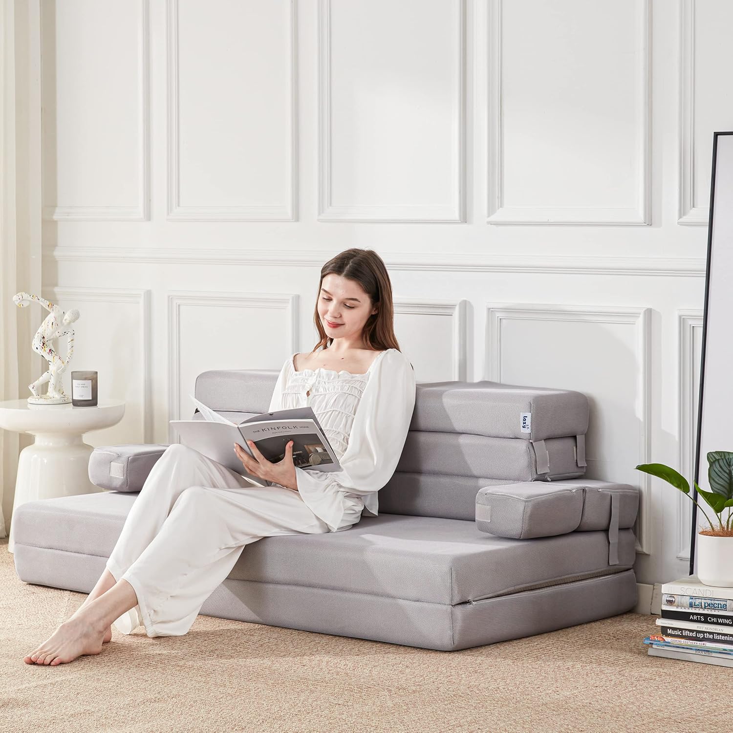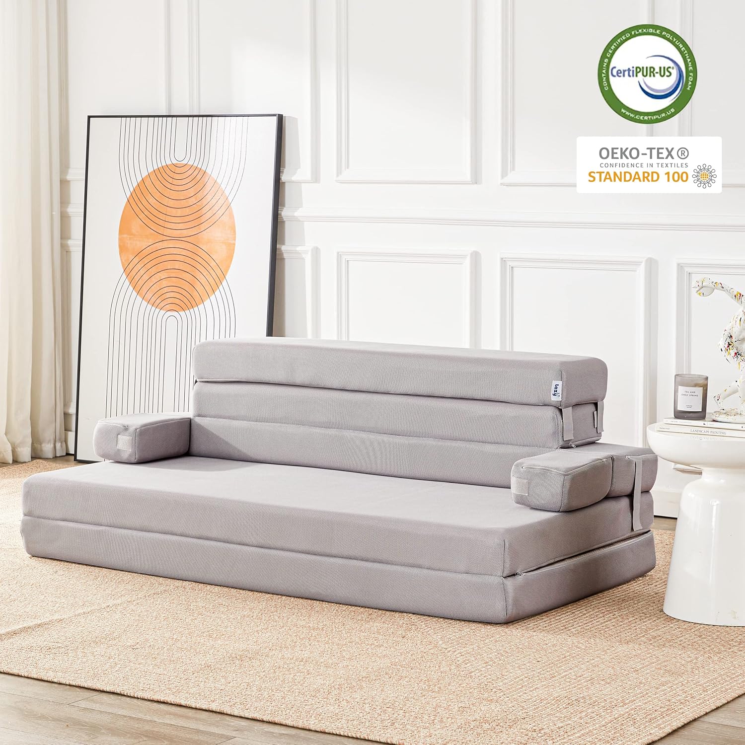 - 【High-Quality Materials】 Filled with high-density foam which offers good support to disperse the pressure for you. The soft & skin-friendly washable cover can be easy to remove and install. The non-slip bottom of the folding sofa bed keeps you from moving around during use. The floor mattress can provide you with an excellent rest and sleep experience.