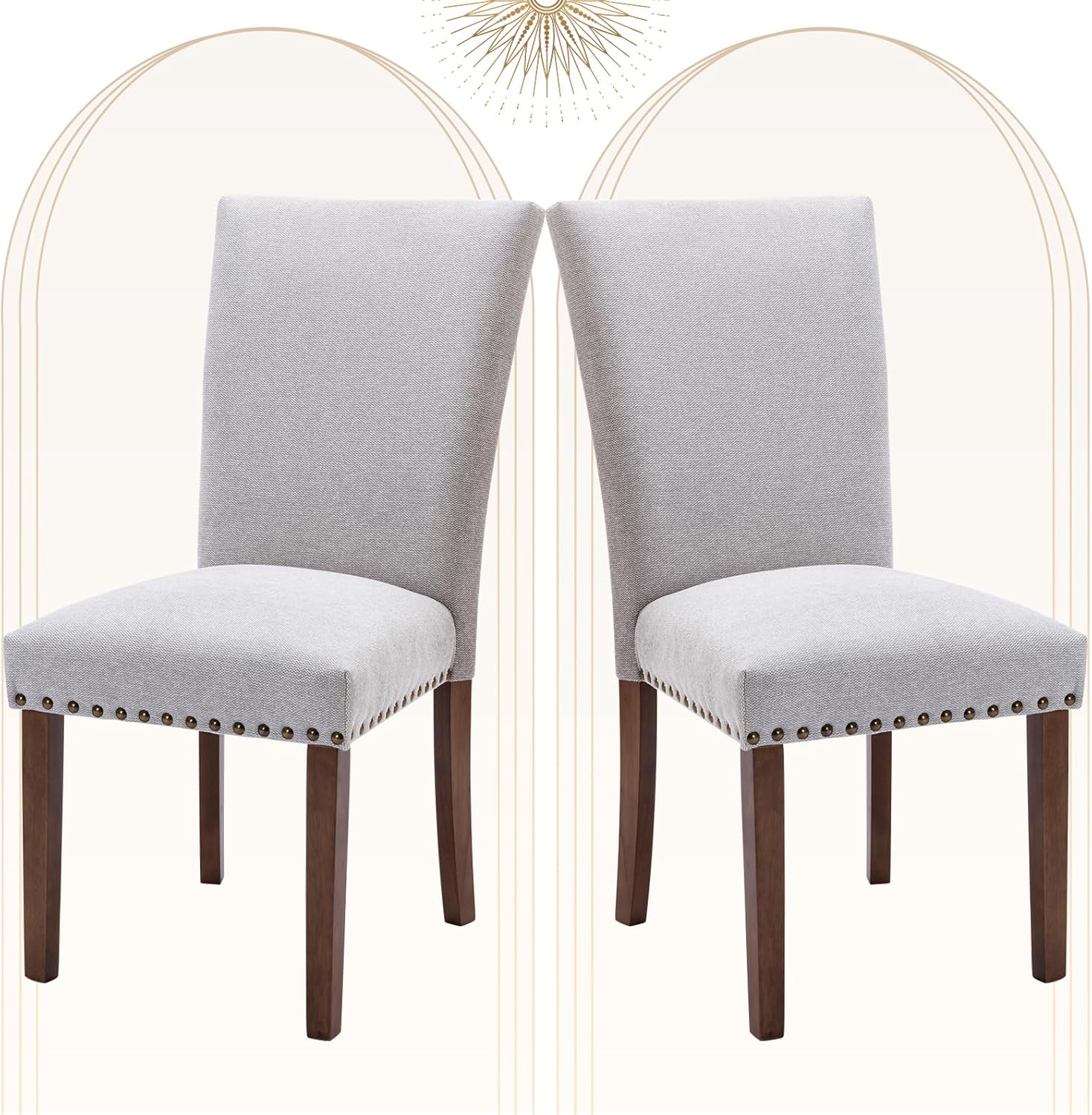 COLAMY Upholstered Parsons Dining Chairs Set of 2, Fabric Dining Room Kitchen Side Chair with Nailhead Trim and Wood Legs - Light Grey
