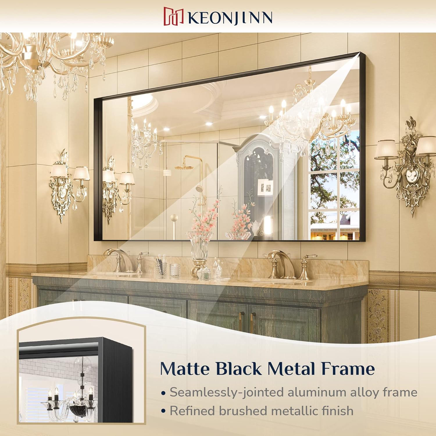 - 【Brand Keonjinn】We have been committed to providing consumers with quality decorative bathroom mirrors. As the leading brand in the mirror category, Keonjinn always brings excellent wonderful quality and superior customer experience.