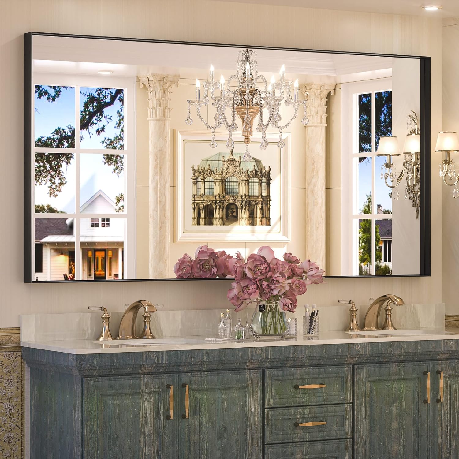 - 【Returnless and Free Replacements】Black framed bathroom mirror damaged on arrival or other problems, no need to worry, we are always there for you with a satisfied solution. Please don't hesitate to get in touch if there's anything we can help with you.