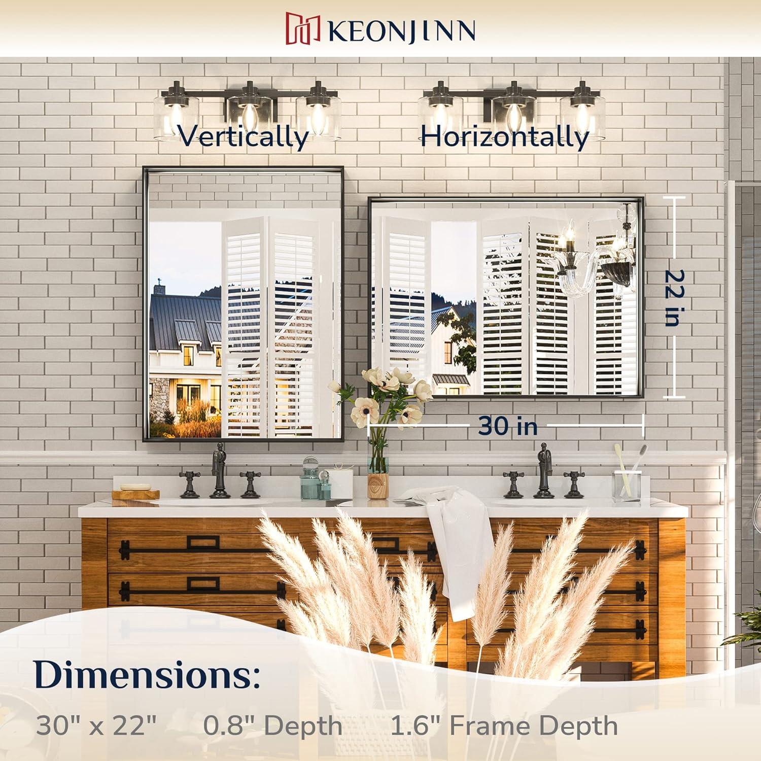 Keonjinn Black Bathroom Mirror 22 x 30 Inch, Brushed Black Framed Mirror for Over Sink, Rectangle Wall Vanity Mirror with Square Corner, Alumium Frame