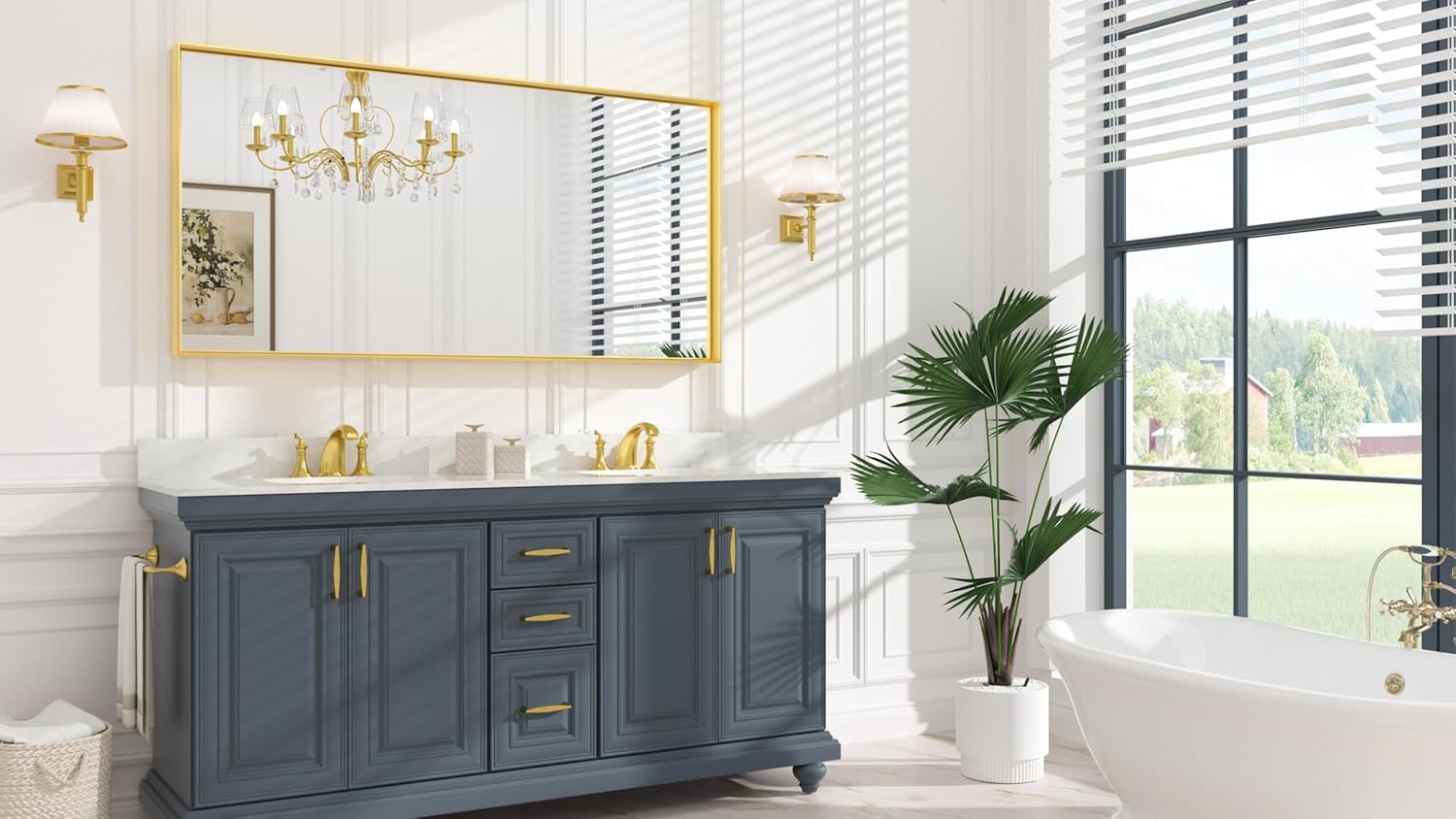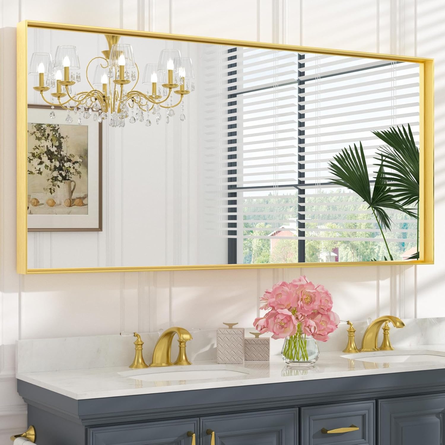 - 【Exceptional Quality】Our dark gold rectangle bathroom mirror is made of HD 5mm glass, bright and anti-distortion, which provides excellent reflection. Aluminum alloy frame and PVC shatterproof film would strengthen the floating glass for safety, waterproof and anti-corrosion in wet bathroom environments.