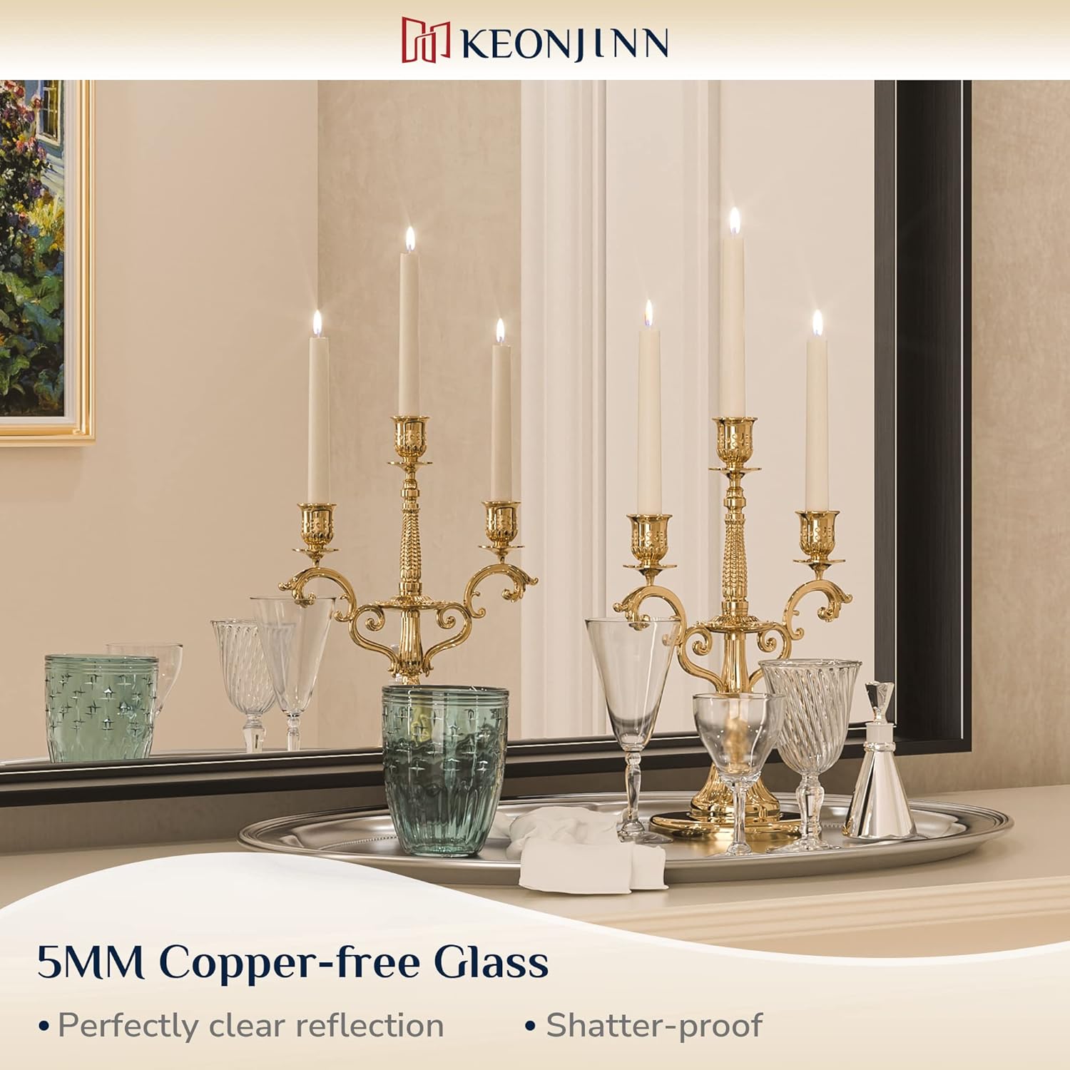 - 【Brand Keonjinn】We have been committed to providing consumers with quality decorative bathroom mirrors. As the leading brand in the mirror category, Keonjinn always brings excellent wonderful quality and superior customer experience.