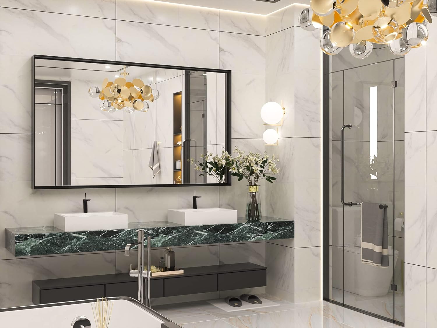 - 【Exceptional Quality】Our black rectangle bathroom mirror is made of HD 5mm glass, bright and anti-distortion, which provides excellent reflection. Aluminum alloy frame and PVC shatterproof film would strengthen the floating glass for safety, waterproof and anti-corrosion in wet bathroom environments.
