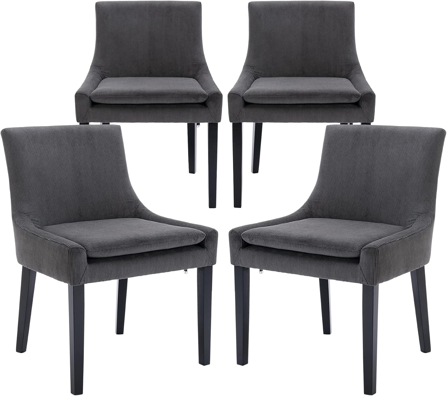 COLAMY Modern Dining Chairs Set of 4, Upholstered Corduroy Accent Side Leisure Chairs with Mid Back and Wood Legs for Living Room/Dining Room-Grey