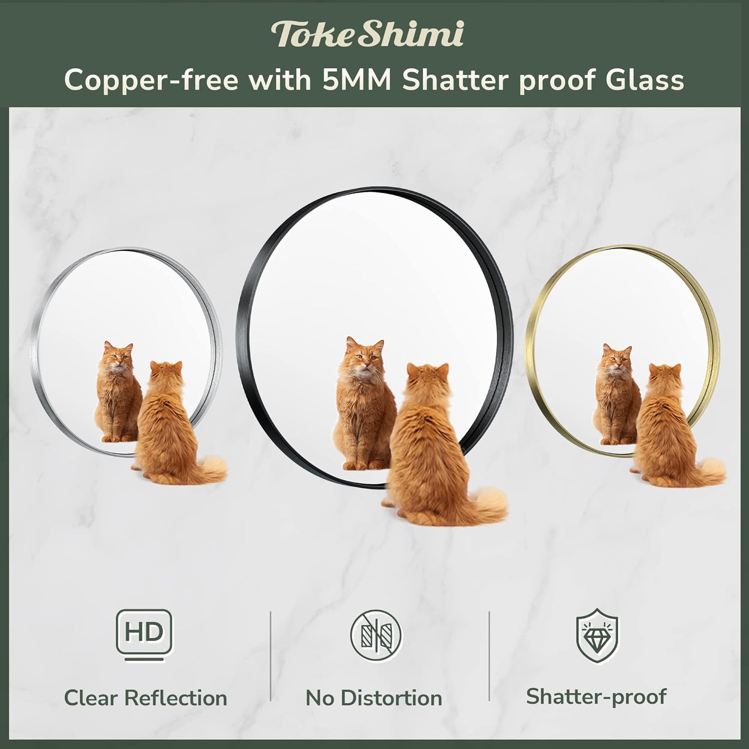 TokeShimi Round Black Mirror 24 Inch for Wall Decor Black Circle Bathroom Mirror with Non-Rusting Aluminum Alloy Brushed Matte Metal Frame for Modern Minimalist Farmhouse Home Decor