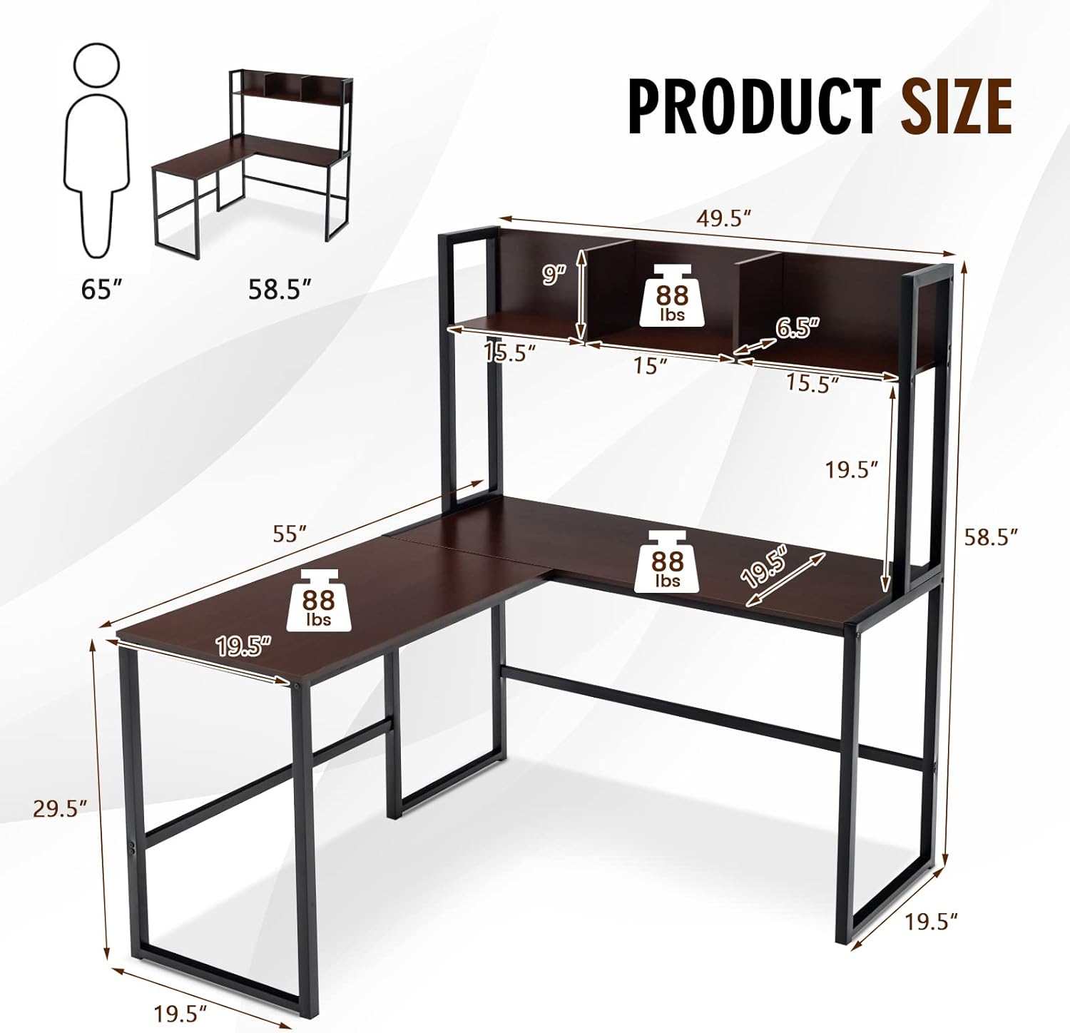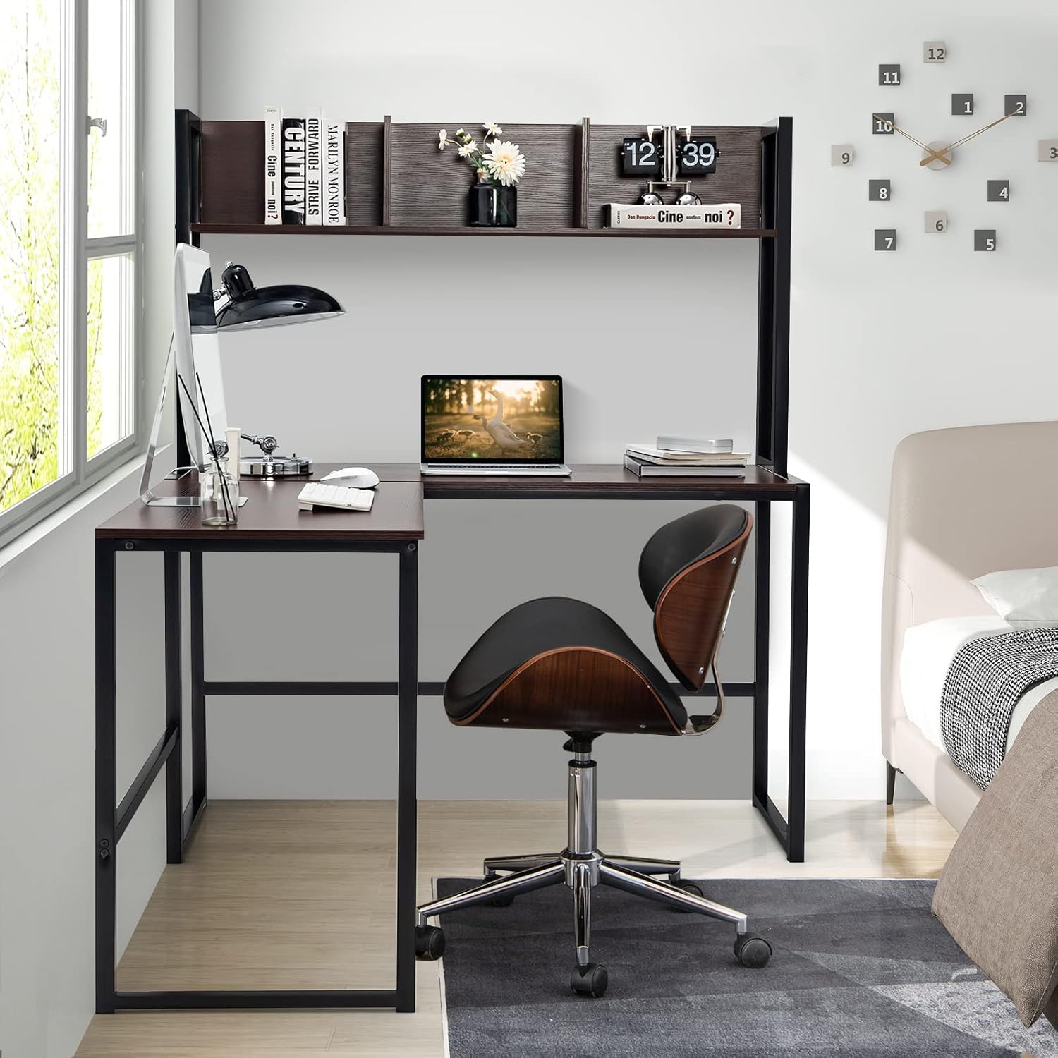 - 【Reversible Hutch Offers Additional Storage】 Attached with open storage hutch which can be installed at right or left side to fit different room configuration. Thanks to open storage hutch with appropriate height, any office essentials placed on it can be accessible easily. More, edging sides make it possible to classify different kinds of items.