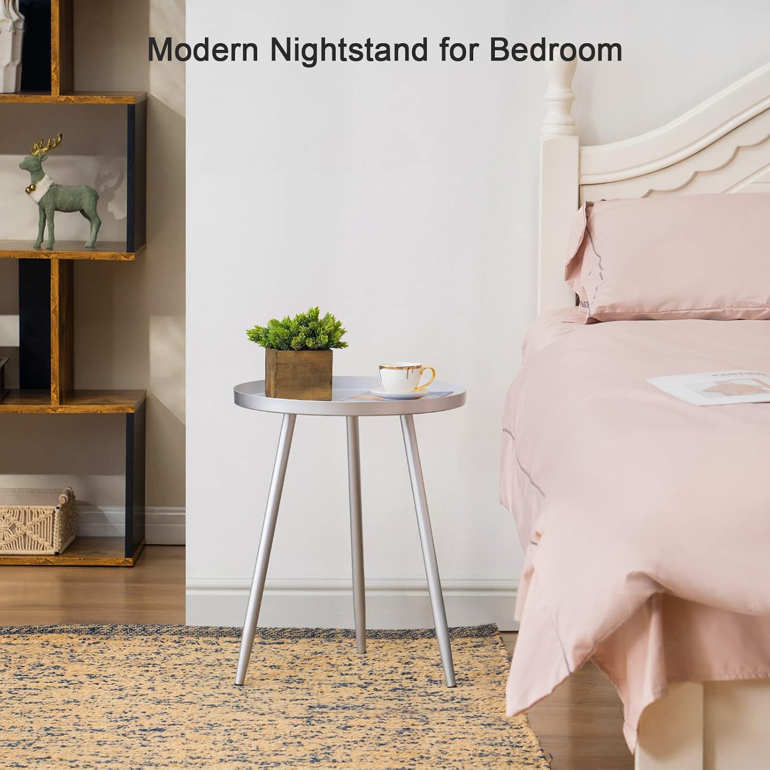 Apicizon 16" Round Side Table Set of 2, Silver Metal End Table for Living Room, Bedside, Mid Century Modern Coffee Table or Circle Accent Table for Small Spaces, Silver and White