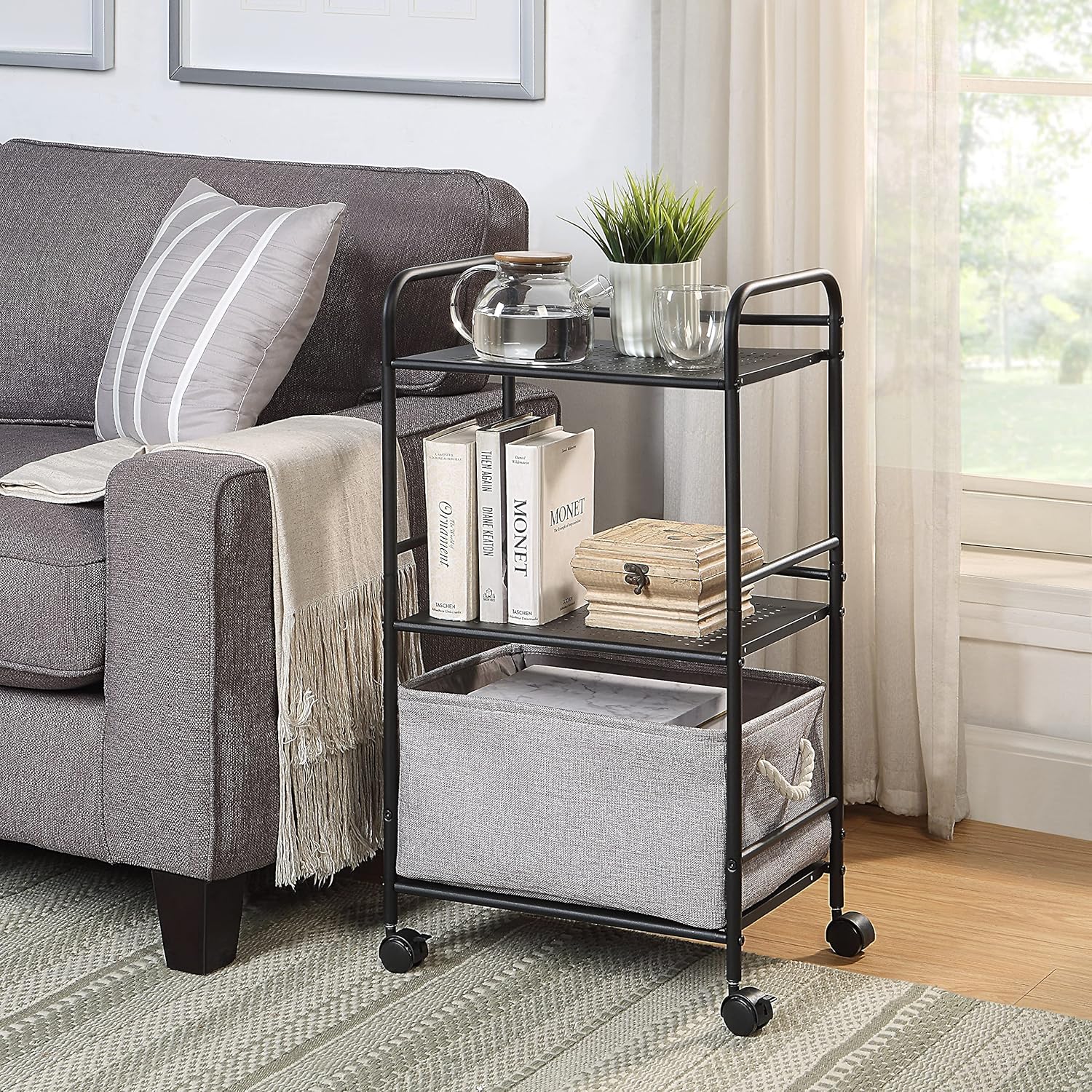 - Strong & Durable Metal Shelves – Sturdy metal frame holds up to 15 lbs per shelf (evenly distributed). Ideal for storing kitchenware, office items, books, or any household essentials.