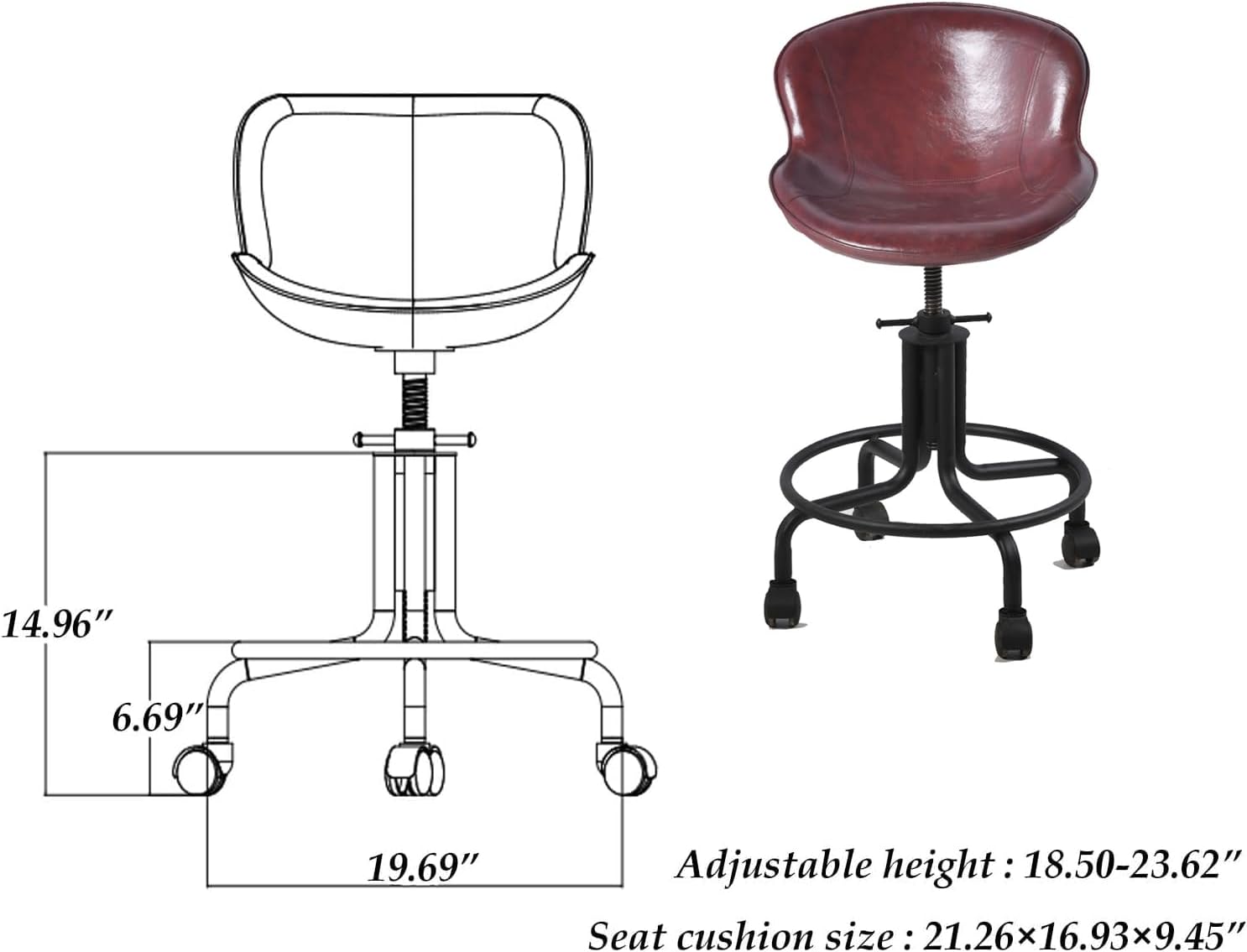 Topower Antique Industrial Design Metal Adjustable Height Kitchen Dining Breakfast Chair Industrial Style Bar Stool Fully Welded Maroon PU Leather Seat