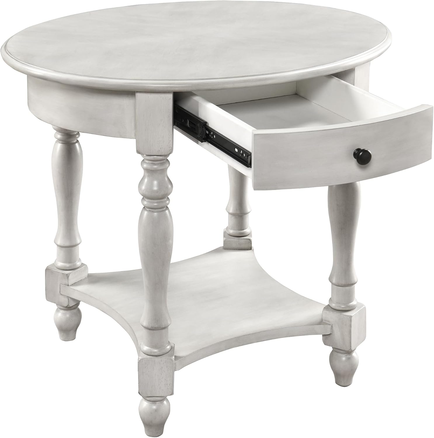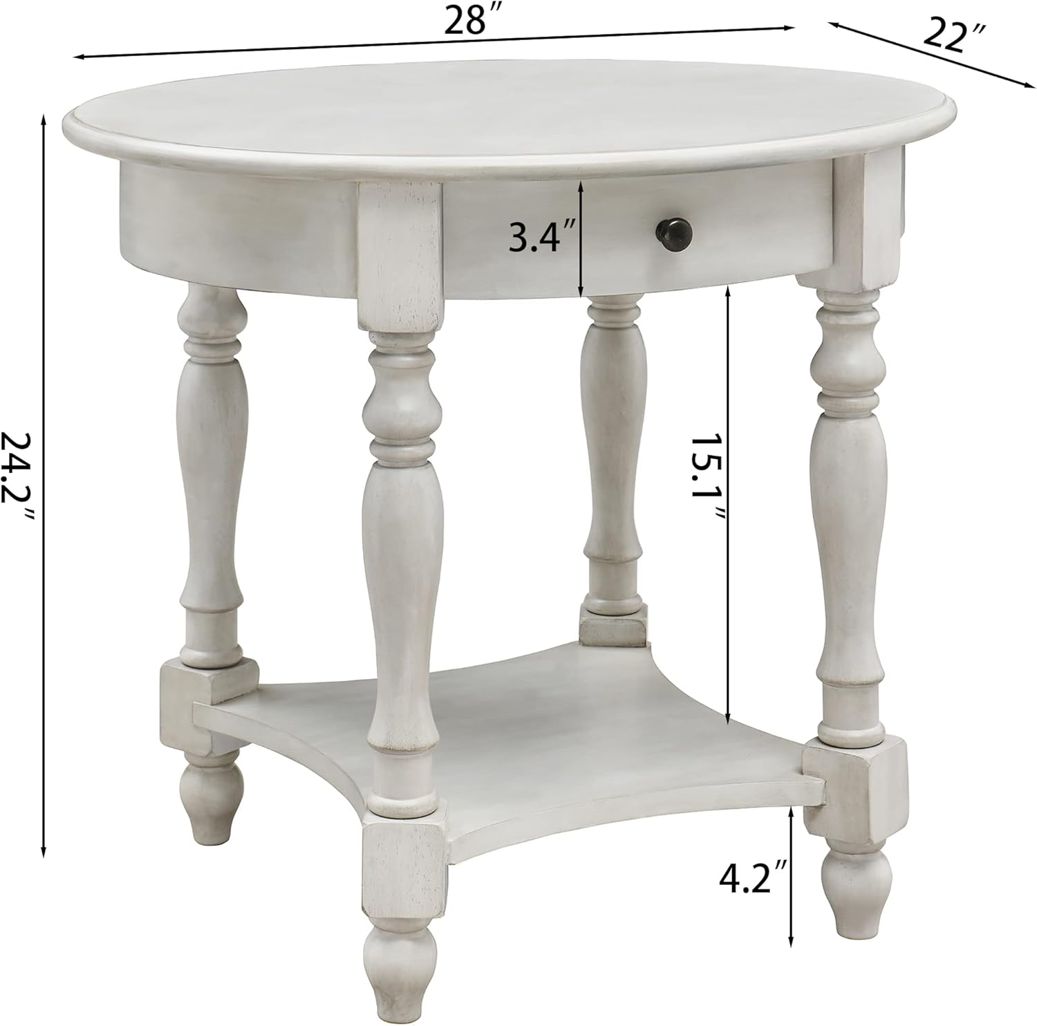 LEEMTORIG Oval Round End Table with Drawer, 2-Tier Solid Wood End Tables, Victorian Antique Nightstand Bedside Table for Bedroom, 28" W x 22" D x 24.2" H, Grey White (not Pure White), CJZ-2233-RW