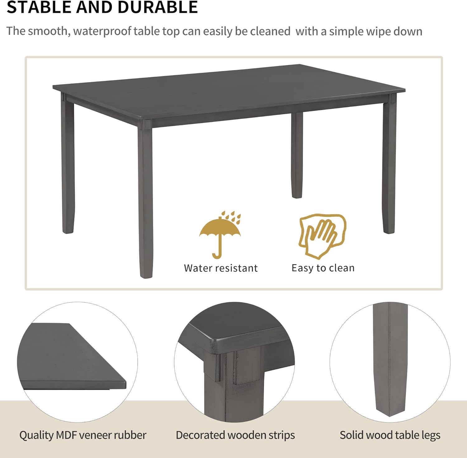 - Ideal for Family Use-- Ideal for dinette, kitchen, and dining areas, this multi-functional dining set seats up to 6 people, perfect for families to enjoy mealtimes together. The smooth, waterproof tabletop can easily be cleaned with a simple wipe down, for hassle-free maintenance.