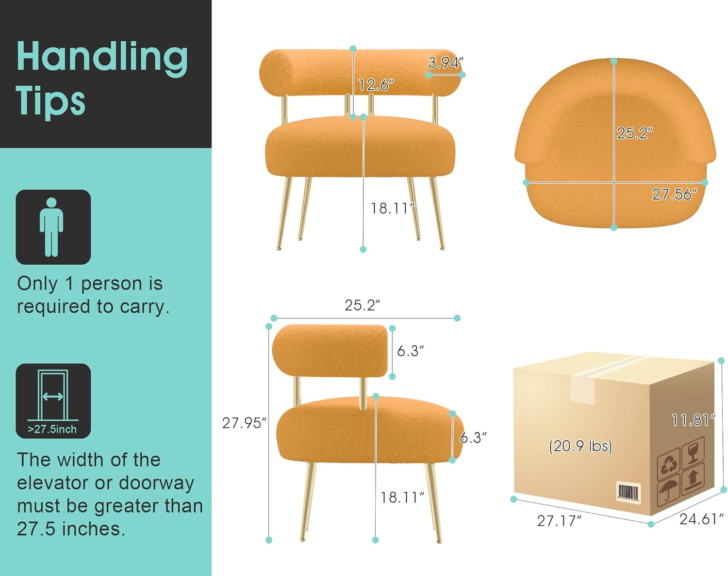 - Comfortable Teddy Fabric: The casual fluffy tub hand chair with open back is designed with soft sherpa material and thick cushion, which is scratch-resistant and skin-friendly. The U-shaped backrest is super comfy like a hug and the armrest is at the perfect height giving your shoulders and arms support. The backrest and cushioin is filled with high-density and high-resilience foam, which brings you comfy seating experience.