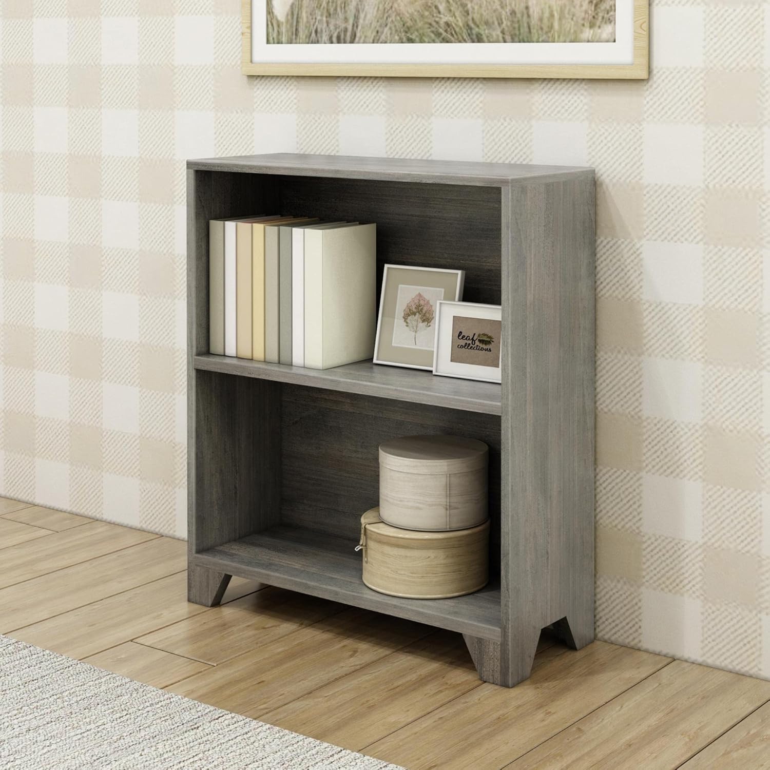 Max & Lily Modern Farmhouse 2-Shelf Bookcase, Solid Wood Bookshelves for Kids Bedroom, Driftwood