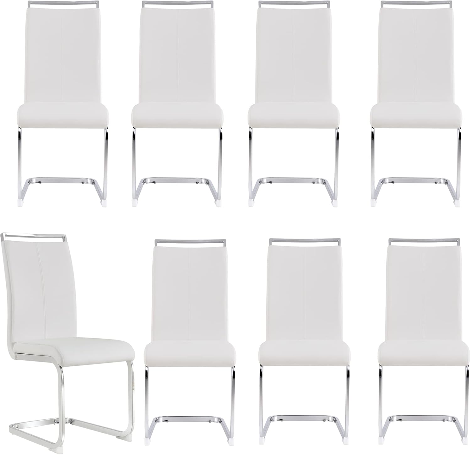 Dining Chairs Set, Kitchen Modern Metal Chairs with Faux Leather Padded Seat High Back and Sturdy Chrome Legs, Chairs for Dining Room (White, Set of 8)