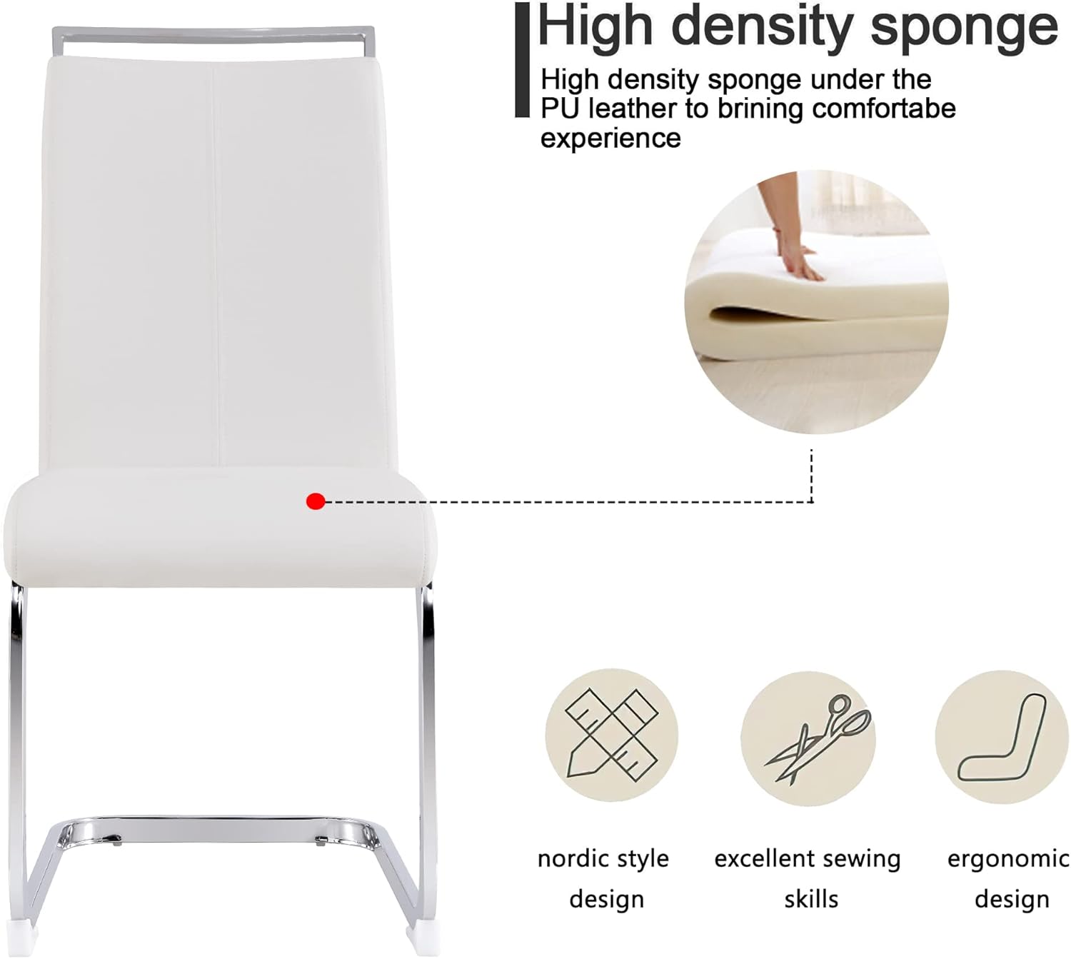 - 【Reliable Dining Room Chair】This modern chair is composed of waterproof leather, soft high-density foam, and 1.2mm thick iron legs, which can provide strong stability and support up to 250 pounds, so you can use it for years to come.