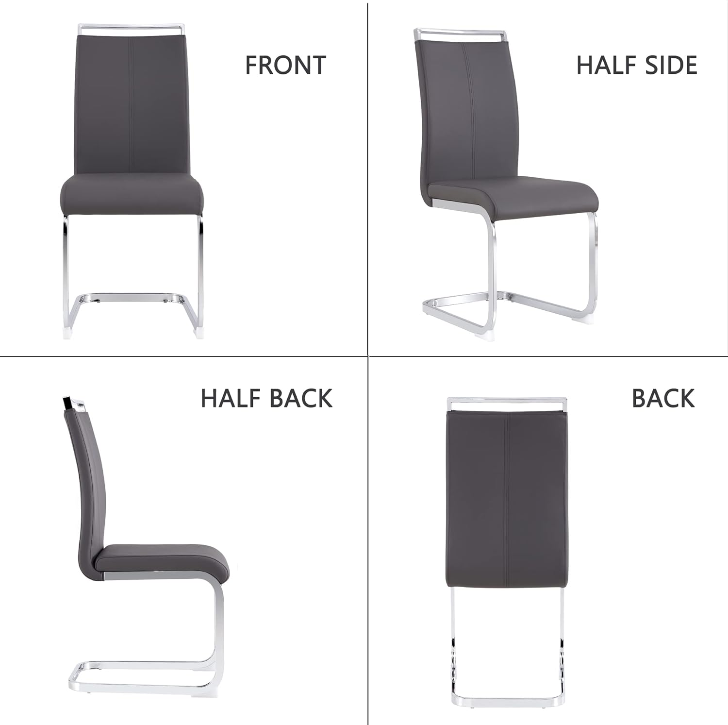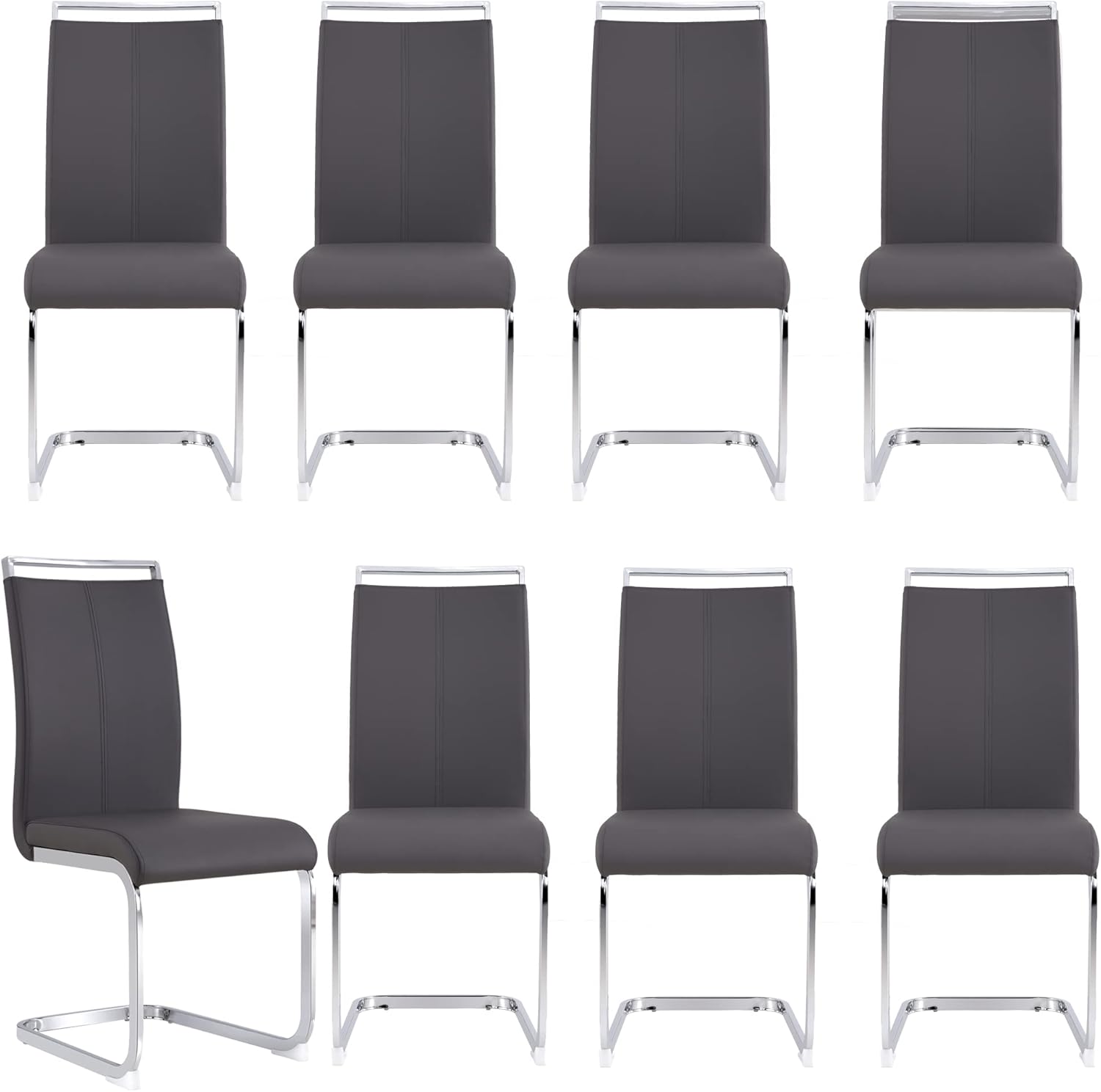 Dining Chairs Set, Kitchen Modern Metal Chairs with Faux Leather Padded Seat High Back and Sturdy Chrome Legs, Chairs for Dining Room (Grey, Set of 8)