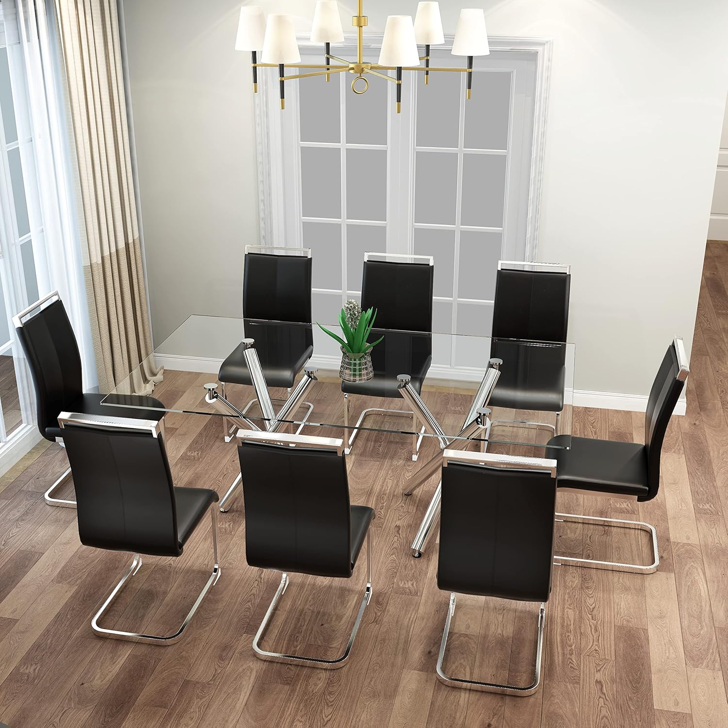 Dining Chairs Set of 8, Kitchen Modern Metal Chairs with Faux Leather Padded Seat High Back and Sturdy Chrome Legs, Chairs for Dining Room (Black, Set of 8)