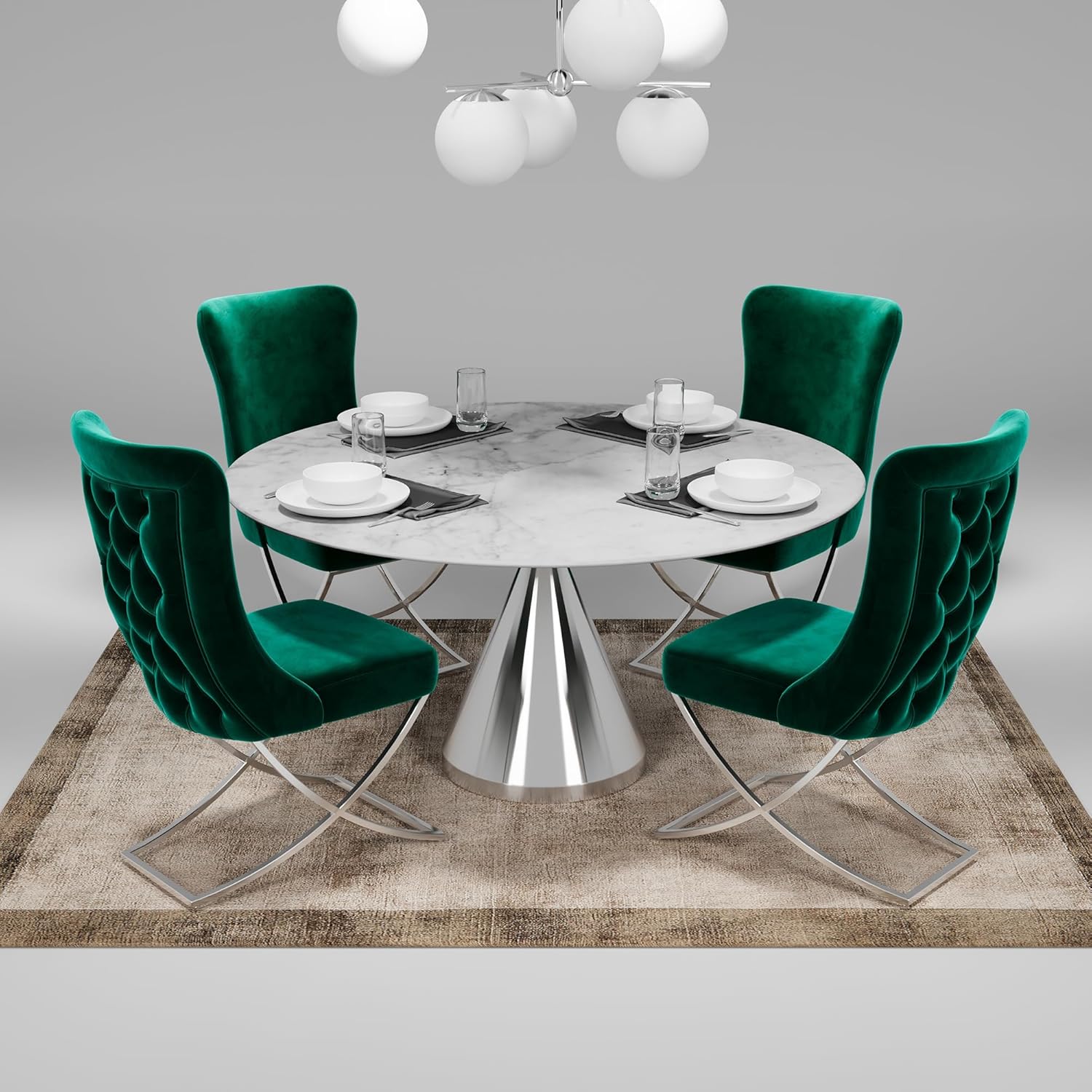 Ottomanson Royal Dining Chairs Set of 8 – Upholstered Tufted Microfiber, Assembled, Silver Metal Legs, Beech Wood Frame, 350 lb Capacity, Green