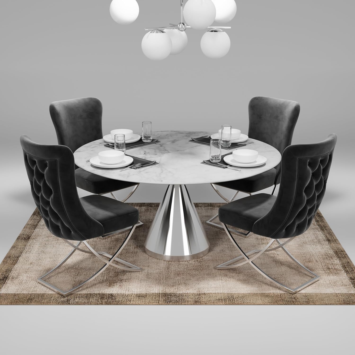 - Silver-Plated Metal Legs – Sturdy steel legs in a polished silver finish add stability and upscale flair to dining rooms, offices, or lounges.
