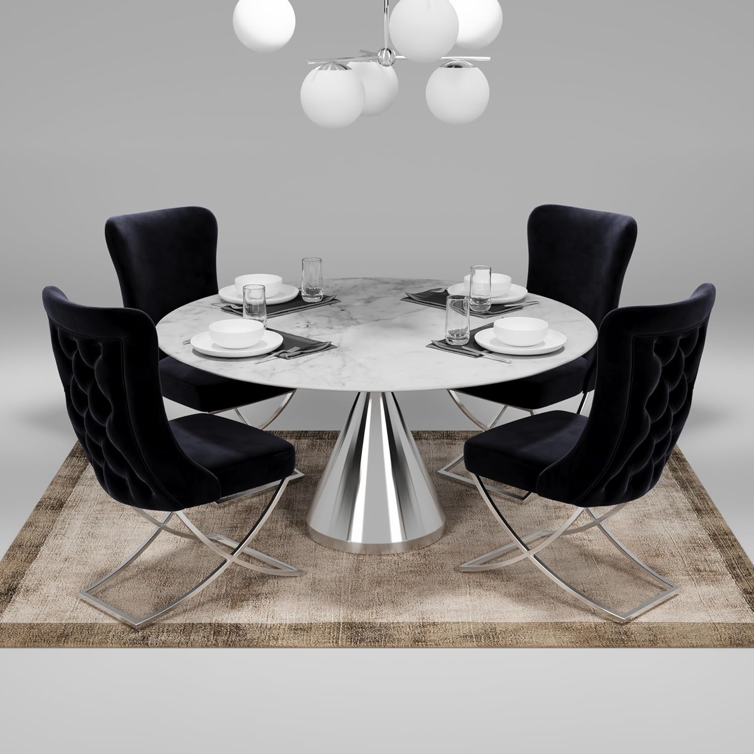Ottomanson Royal Dining Chairs Set of 4 – Upholstered Tufted Microfiber, Assembled, Silver Metal Legs, Beech Wood Frame, 350 lb Capacity, Black