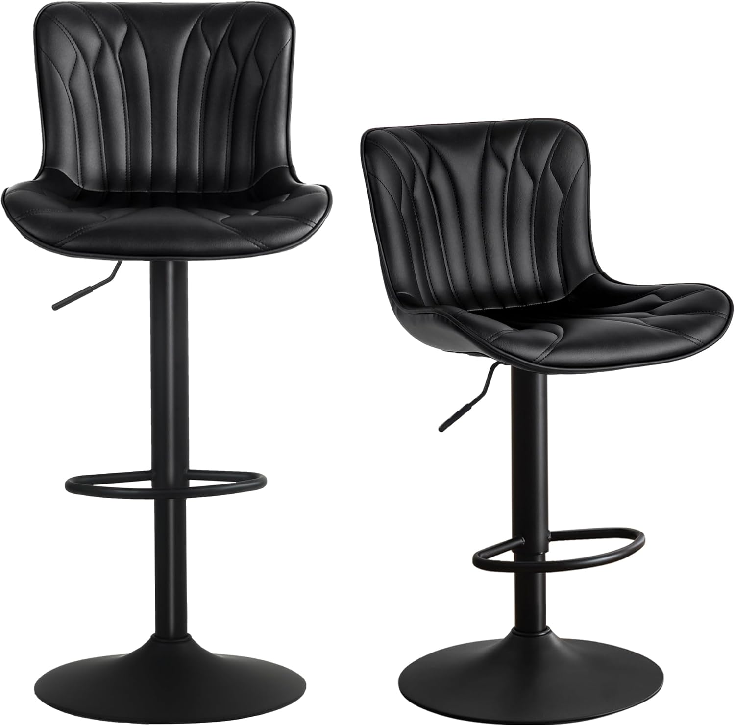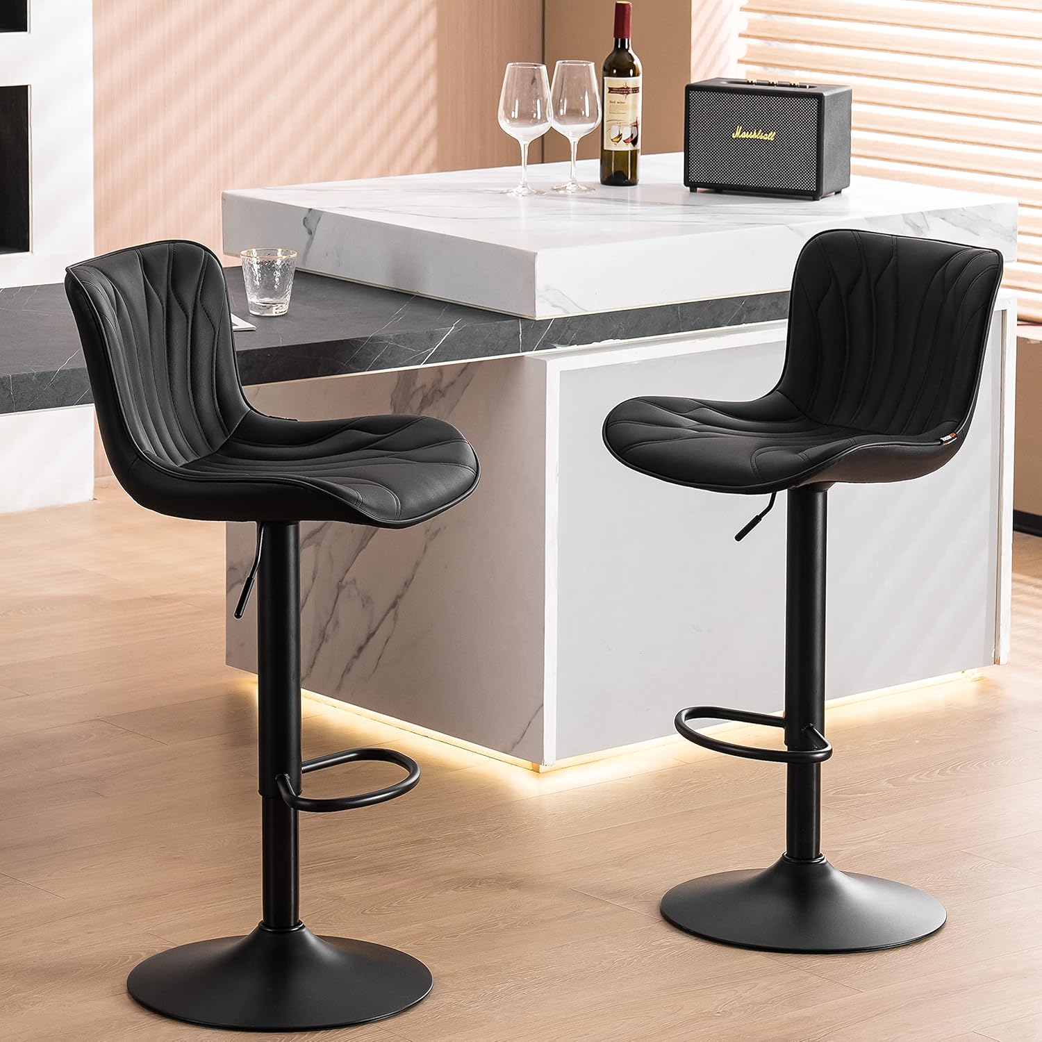 YOUNUOKE Bar Stools Set of 2 Black Barstools Adjustable Counter Height Stools 24 inch Swivel Modern Bar Stool with Back for Kitchen Island
