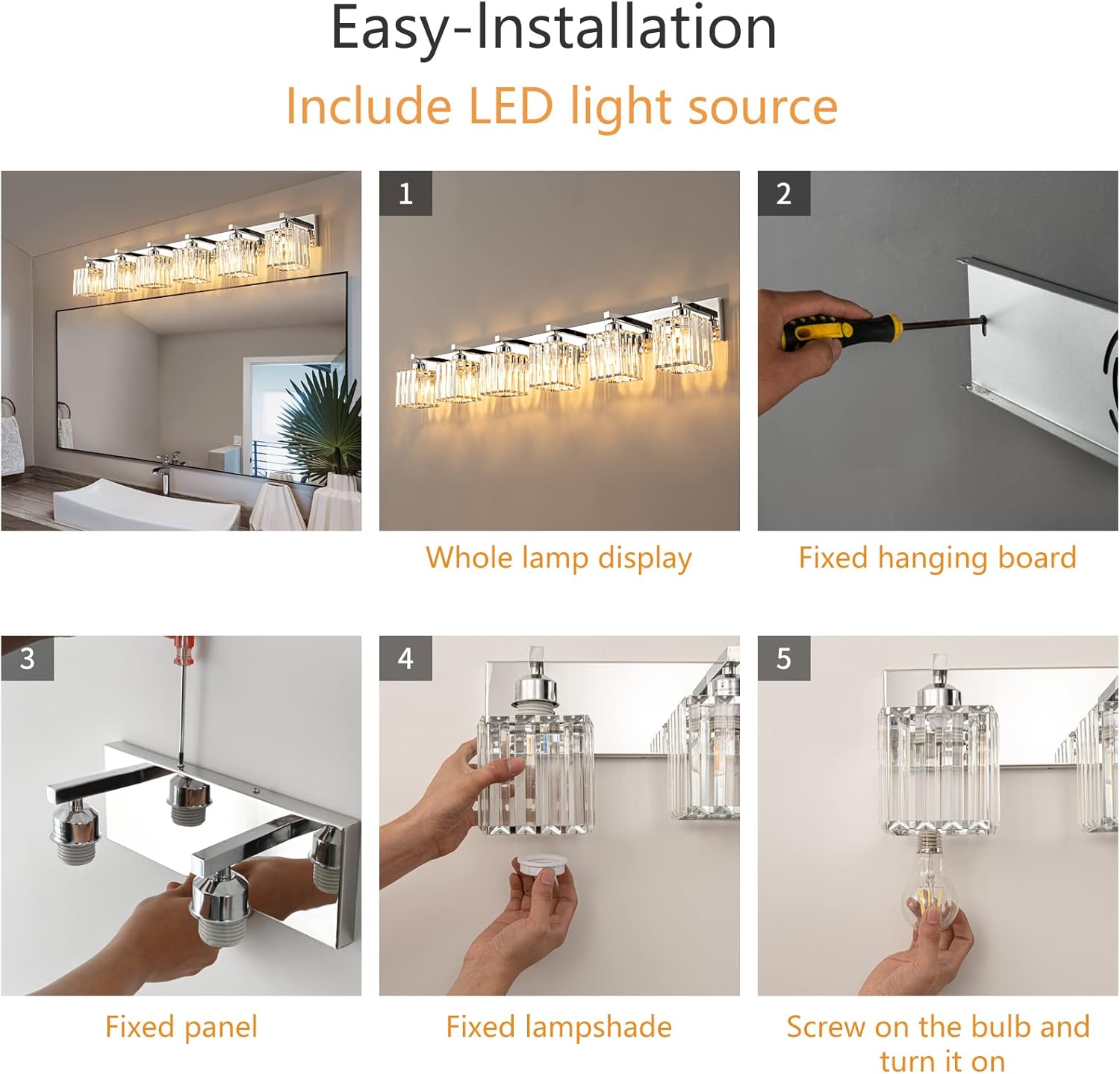 - [Easy Installation] This is designed for American Standard junction boxes and does not require complicated installation procedures. All required parts are included in the package and extra replacement crystal strips are available. Note: For your safety, please install the vanity light under the guidance of an electrician.
