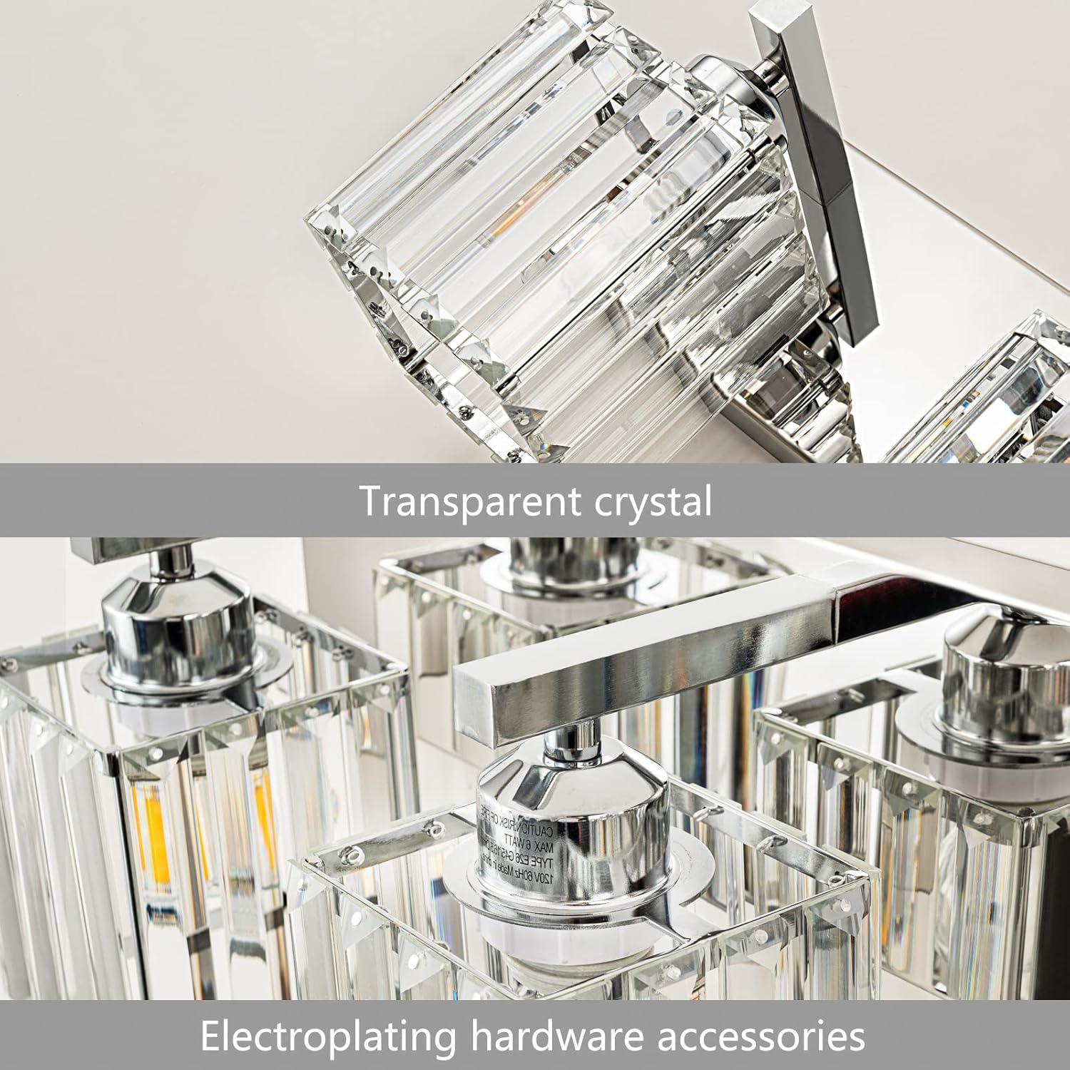 - [High quality manufacturing] Bathroom lights shade is made of clear K9 crystal, base and arm are made of metal, corrosion and moisture resistant, sturdy and durable. Can create a beautiful lighting effect, bathroom vanity lighting simple and luxurious design shows your taste.