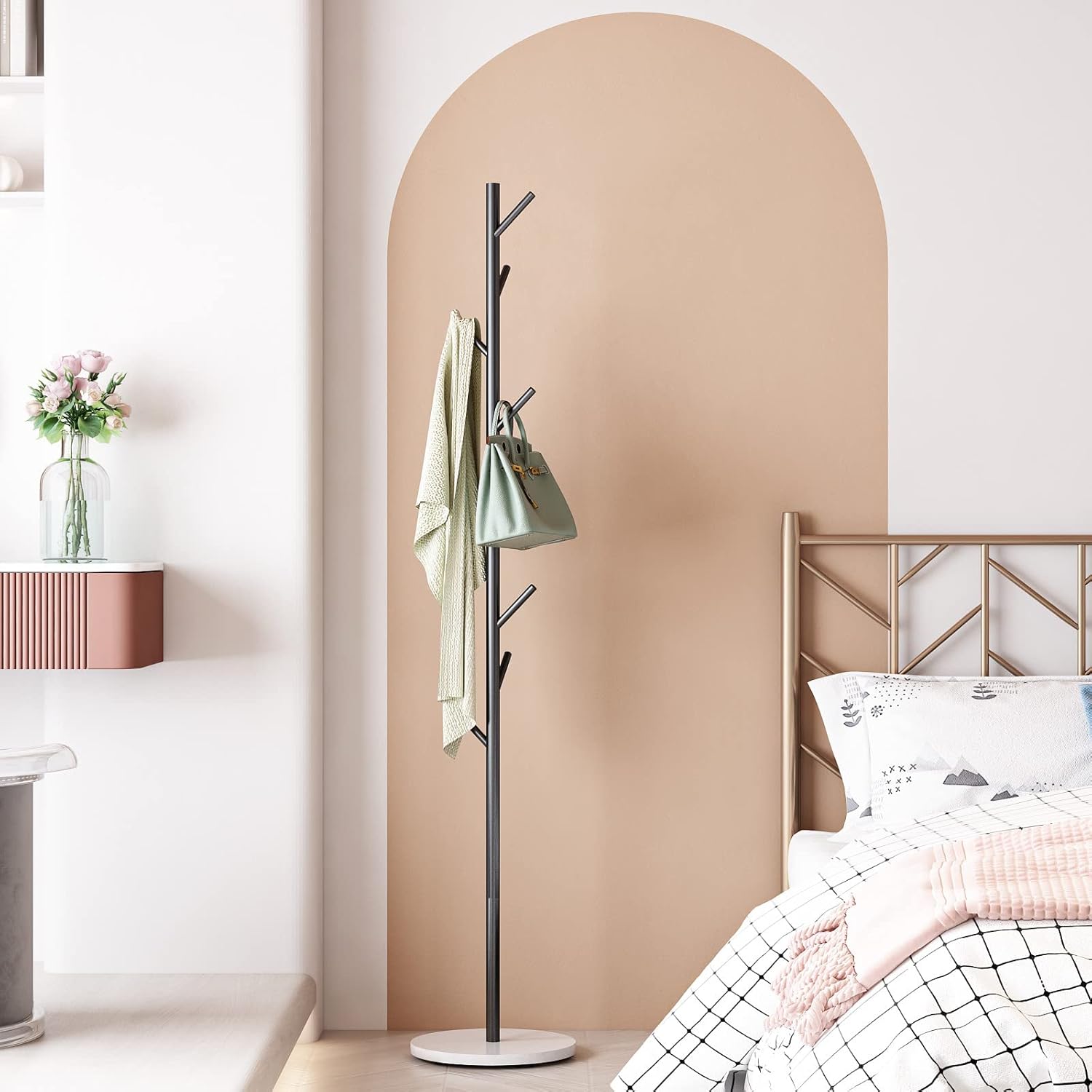 Black Metal Coat Rack, Freestanding with Hooks, Entryway Coat Rack Stand, Coat Racks with Marble Base, Coat Tree for Hanging Clothes, Hats, Bags