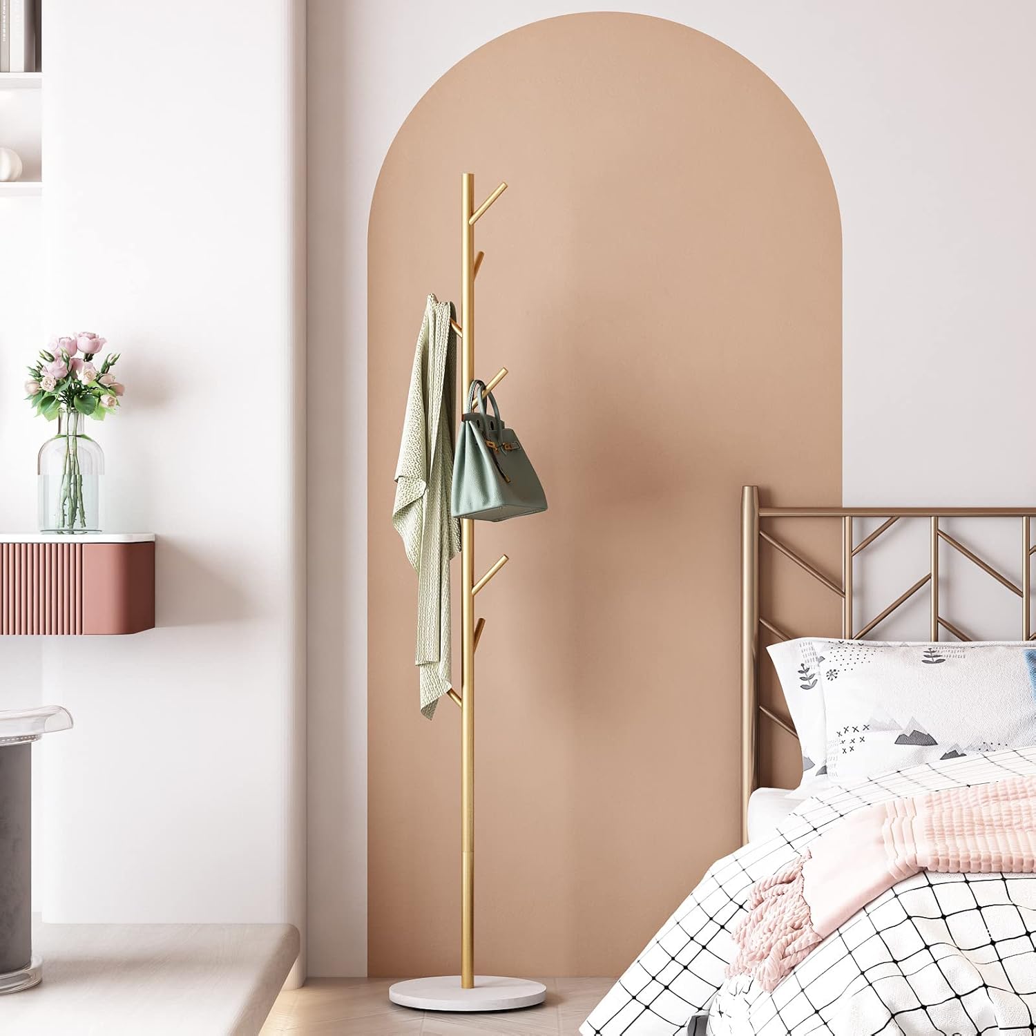 Gold Coat Racks, Metal Coat Rack Freestanding with Hooks, Entryway Coat Rack Stand, Coat Racks with Marble Base, Coat Tree for Hanging Clothes, Hats, Bags