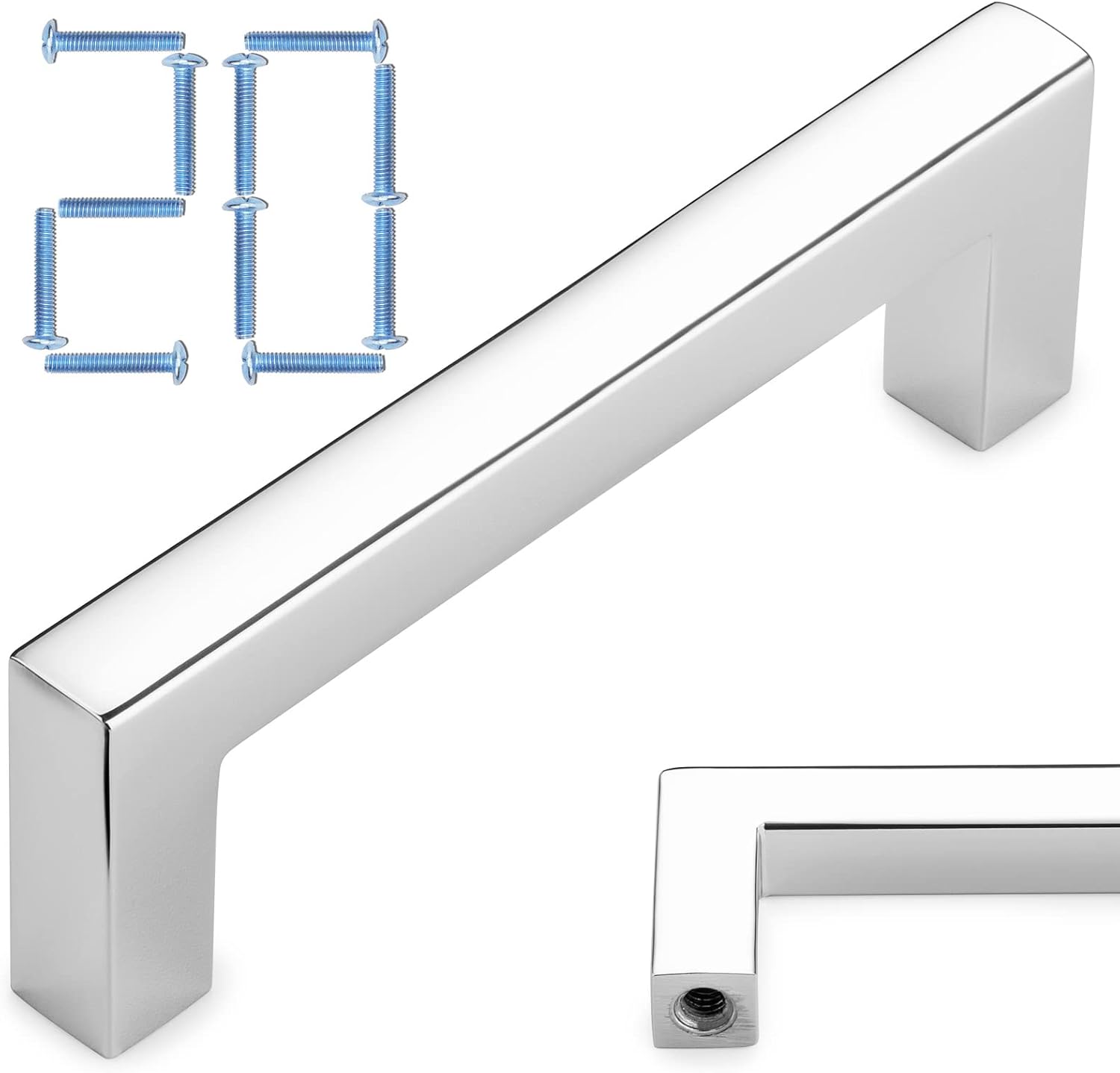 KOOFIZO 20-Pack Solid Square Bar Cabinet Handle - Chrome Furniture Pull, 3 Inch/76mm Screwhole Distance for Kitchen Cupboard Door, Bedroom Dresser Drawer, Bathroom Wardrobe Hardware